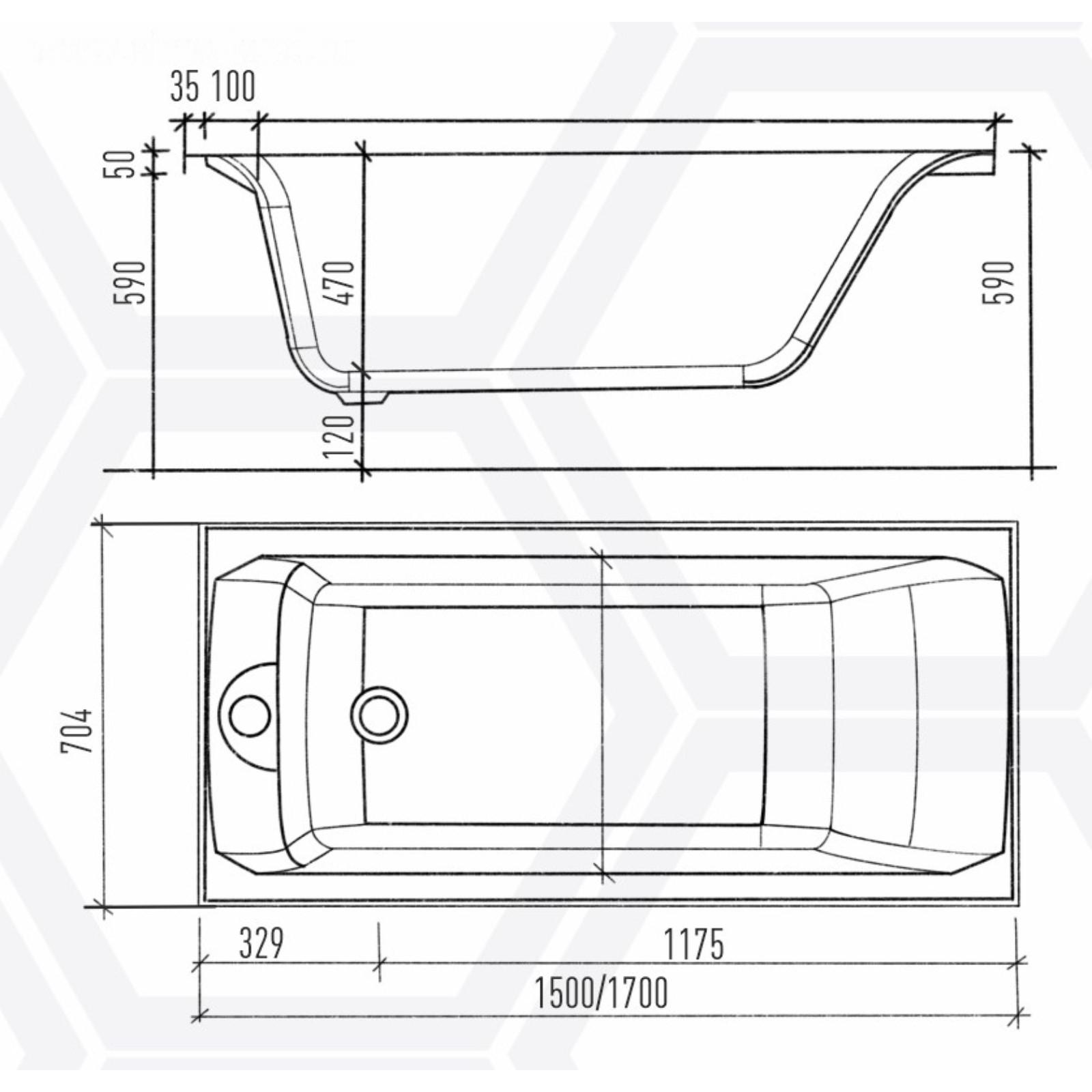 Ванна акриловая Eurolux QWATRY 15070, 150x70x47 см, без каркаса