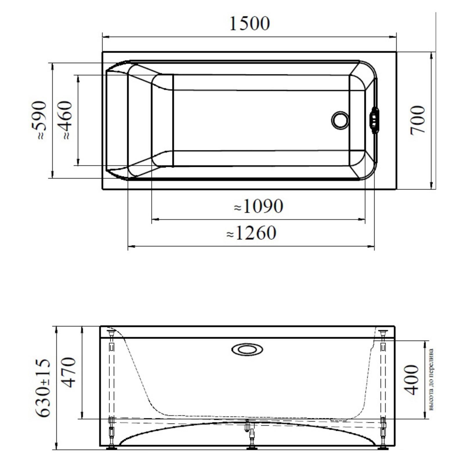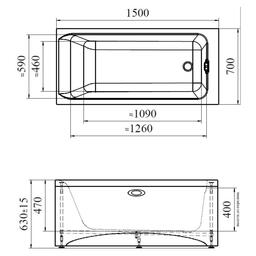 Ванна акриловая Vannesa 2-01-0-0-0-224 "Агата", 150 х 70 см, без каркаса