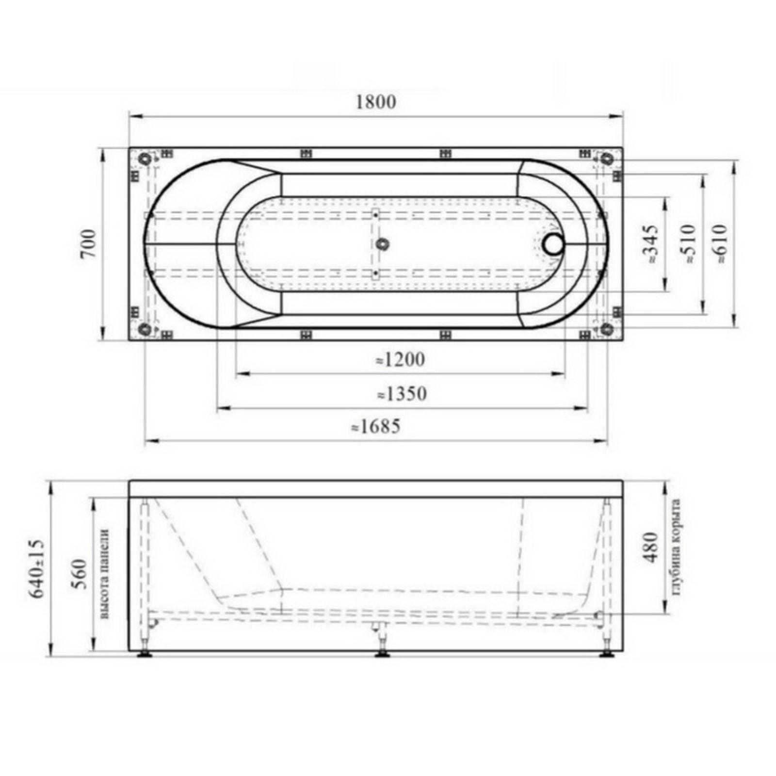Ванна акриловая Vannesa 2-01-0-0-0-243 "Виктория", 180 х 70 см, без каркаса