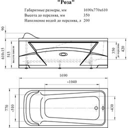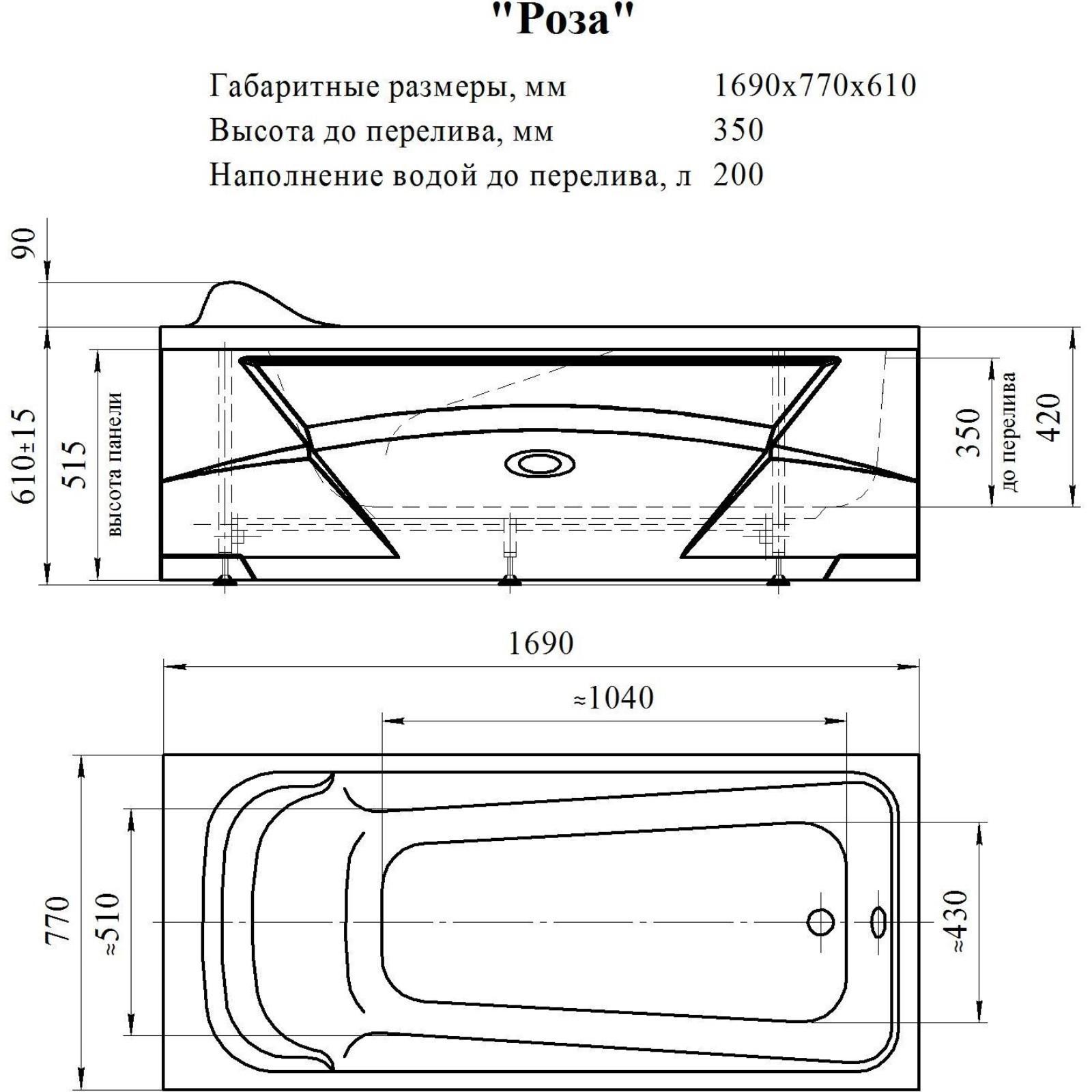 Ванна акриловая Vannesa 2-01-0-0-1-208Ч "Роза", 169 х 77 см, без каркаса