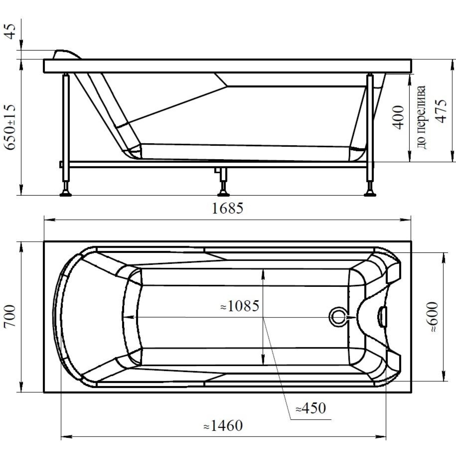 Ванна акриловая RADOMIR 1-01-0-0-1-029 "Ларедо 3", 168 х 70, без каркаса