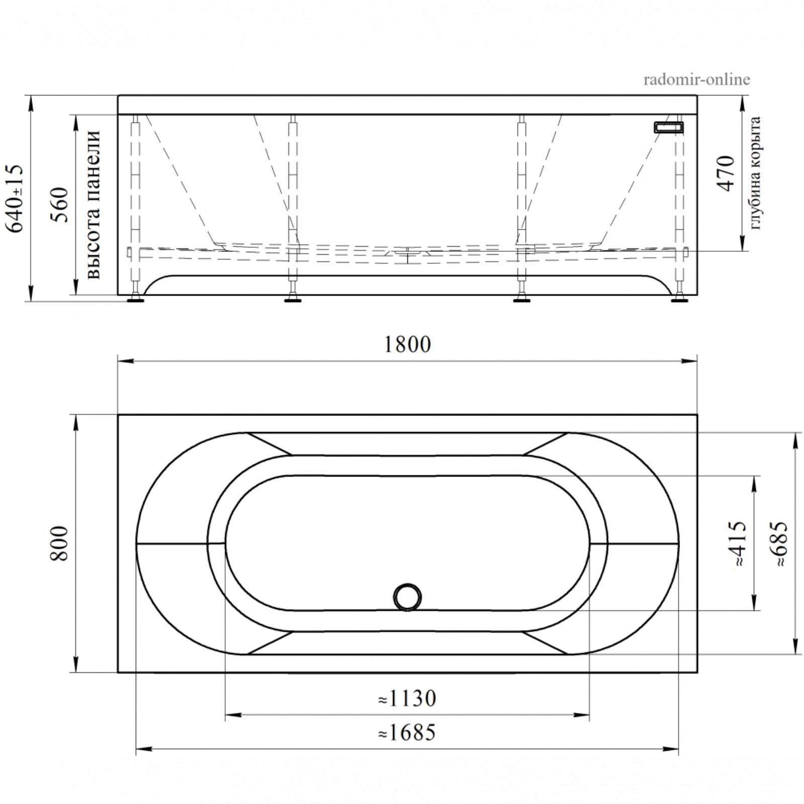 Ванна акриловая RADOMIR 1-01-0-0-1-183 "Вальс", 180 х 80 х 64, без каркаса