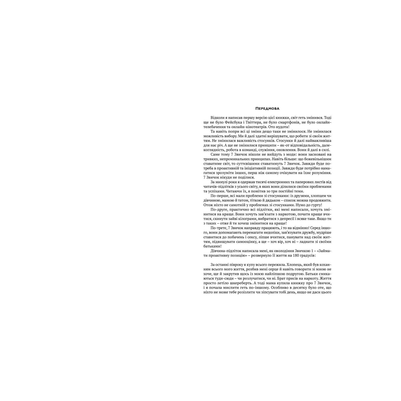 Їхні цілі, мрії, плани – усе це здійсненне й досяжне. Просто потрібно знати, що допоможе правильно рухатися обраним шляхом. І ця книга Шона Кові стала для мільйонів підлітків школою самоповаги та успіху.