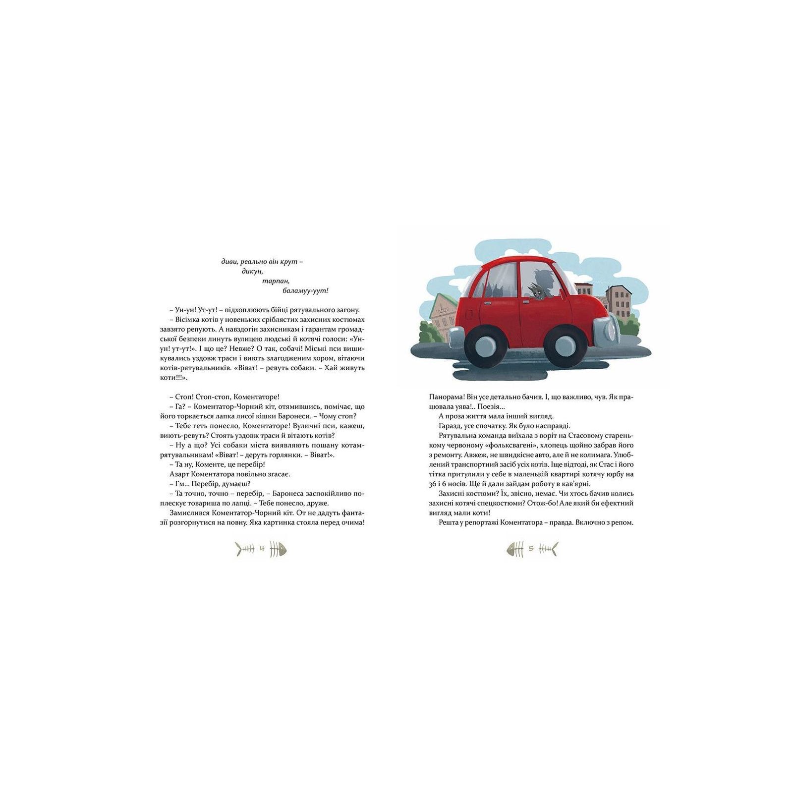Під час чергового виклику загадково зникає Коментатор-Чорний кіт. Поки друзі скрізь його розшукують, у місті розгортається кампанія з дискредитації котів-рятувальників. Чи вдасться котам вибратися з халеп і небезпек, які на них чигають звідусіль, — читайте у цікавій і динамічній історії з чудовими ілюстраціями Наталки Гайди.