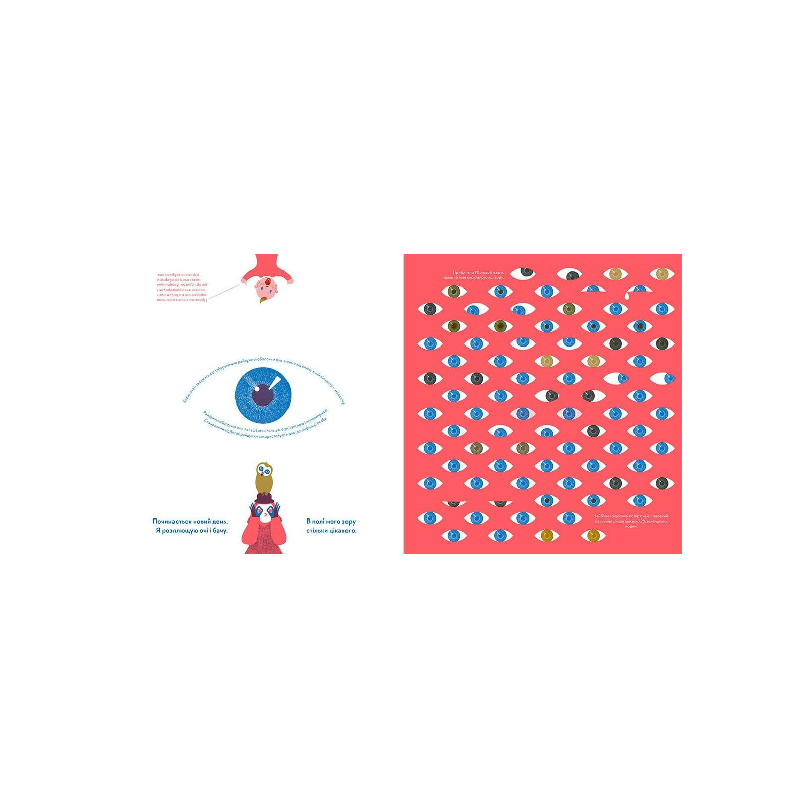 Пізнавальна книжка-картинка творчої майстерні «Аграфія» про зір. Про те, що ми можемо бачити очима, і про те таємниче, невидиме око, яке пробуджує в нас інтерес до Всесвіту та до власної сутності.