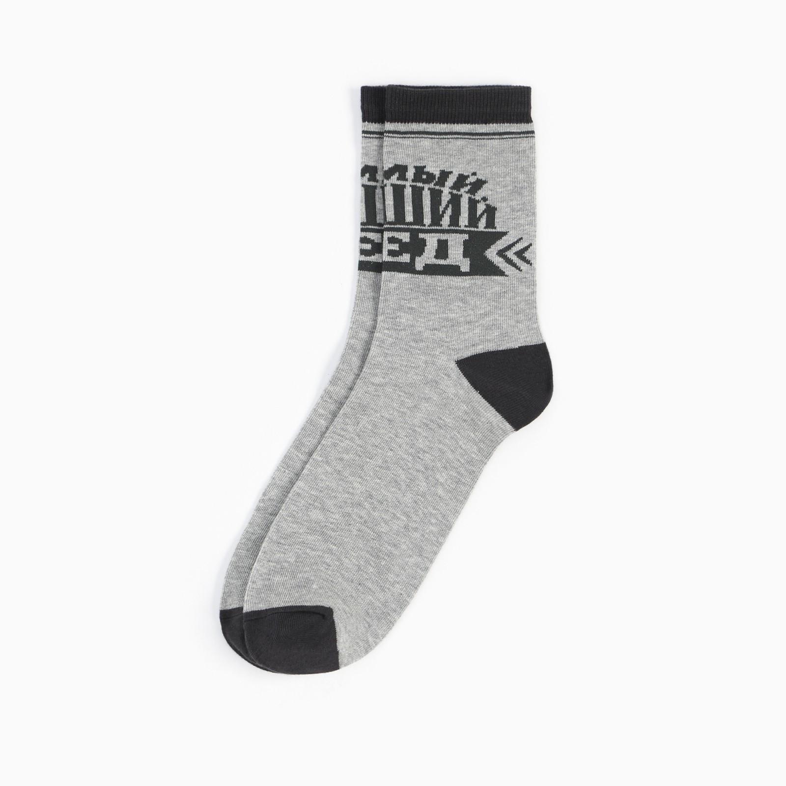 Носки мужские "Самый лучший дед" р-р 41-44 (27-29 см), сер., 80% хл.,15% п/а, 5% эл.