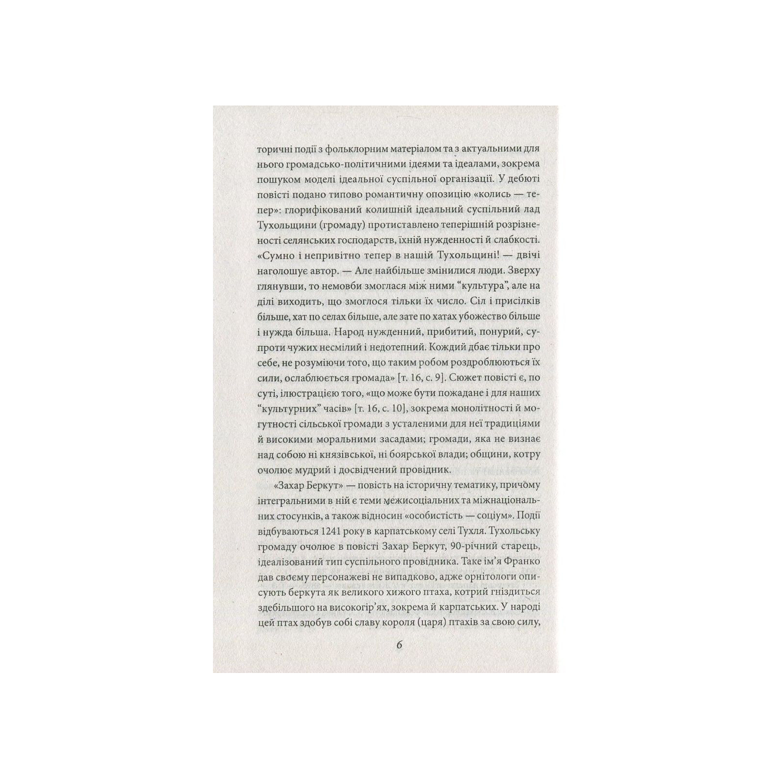Повість "Захар Беркут" - це найвідоміший художній твір Івана Франка на історичну тему. Відтворюючи історичне минуле, боротьбу жителів місцевості Тухля проти монголо-татар, письменник переплітає художню вигадку та народну творчість, беручи за основу широко відому в Галичині і в Закарпатті легенду про те, як тухольська громада весною 1241 року затопила монгольське військо. І як би там не було, але сьогодні ця повість сприймається напрочуд сучасно, коли йдеться про визволення нашої рідної землі від загарбників.