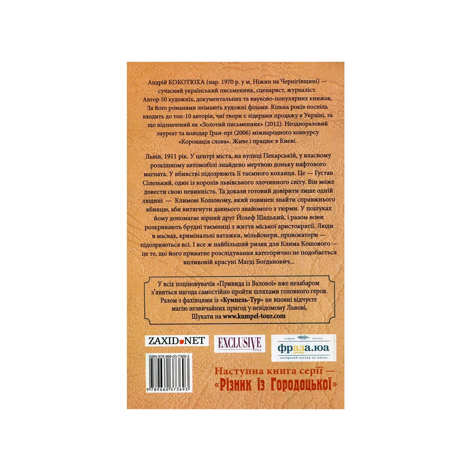 Львів, 1911 рік. У центрі міста, на вулиці Пекарській, у власному розкішному автомобілі знайдено мертвою доньку нафтового магната. У вбивстві підозрюють її таємного коханця. Це - Густав Сілезький, один із королів львівського злочинного світу. Він може довести свою невинність. Та докази готовий довірити лише одній людині - Климові Кошовому, який повинен знайти справжнього вбивцю, аби витягнути давнього знайомого з тюрми. У пошуках йому допомагає вірний друг Йозеф Шацький, і разом вони розкривають брудні таємниці з життя міської аристократії. Люди в масках, кримінальні ватажки, мільйонери, провокатори - підозрюються всі. І все ж найбільший ризик для Клима Кошового - це те, що його приватне розслідування категорично не подобається впливовій красуні Магді Богданович...