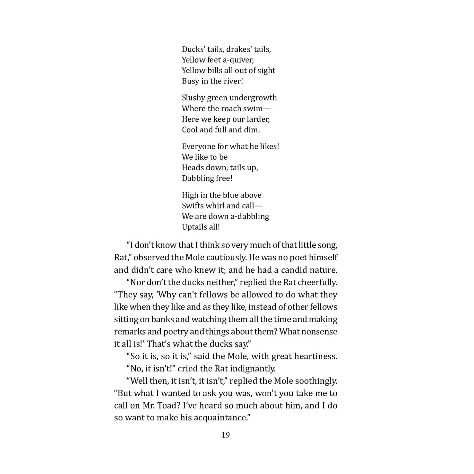 «The Wind in The Willows» is a fairy tale by the Scottish writer Kenneth Grahame (1859–1932). The work is full of subtle irony towards capitalist civilization. In this book, nature transforms the characters and teaches them wisdom. The work touches on simple but eternal values of life — friendship, mutual assistance, the joy of living in harmony with nature.