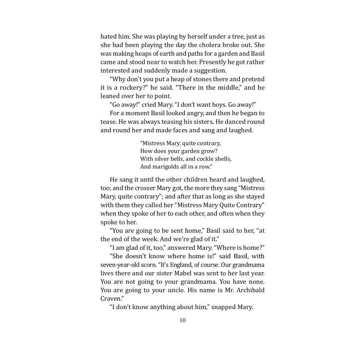 The novel «The Secret Garden» by the Anglo-American writer Frances Burnett (1849–1924) is about an orphan girl named Mary. One morning, Mary discovers an abandoned garden. She begins to take care of him. The garden helps Mary and her friends to notice the beauty and charm of every moment, to open their hearts to love all living things.