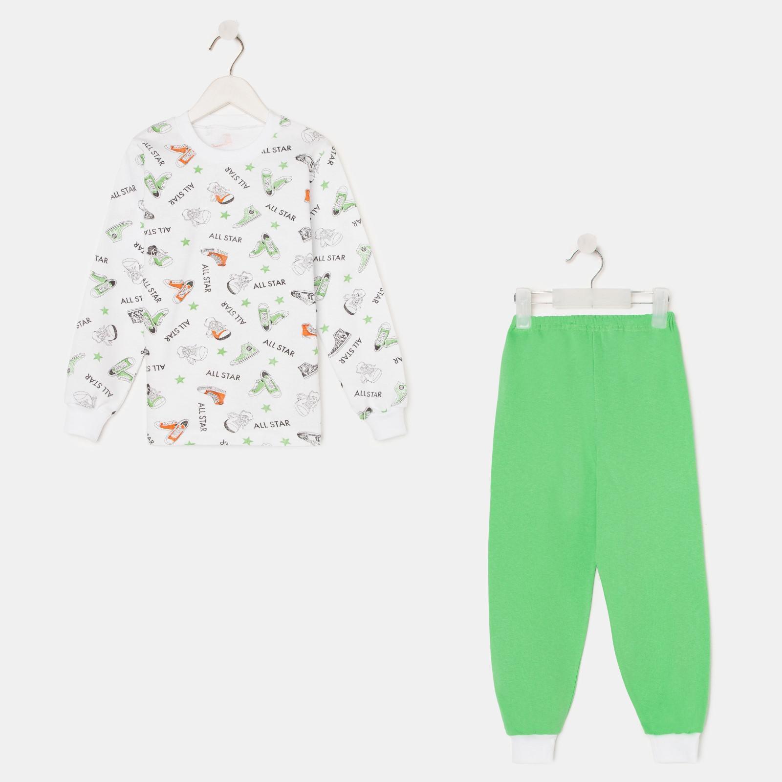 Пижама для мальчика НАЧЁС, цвет белый/зелёный, рост 116 см