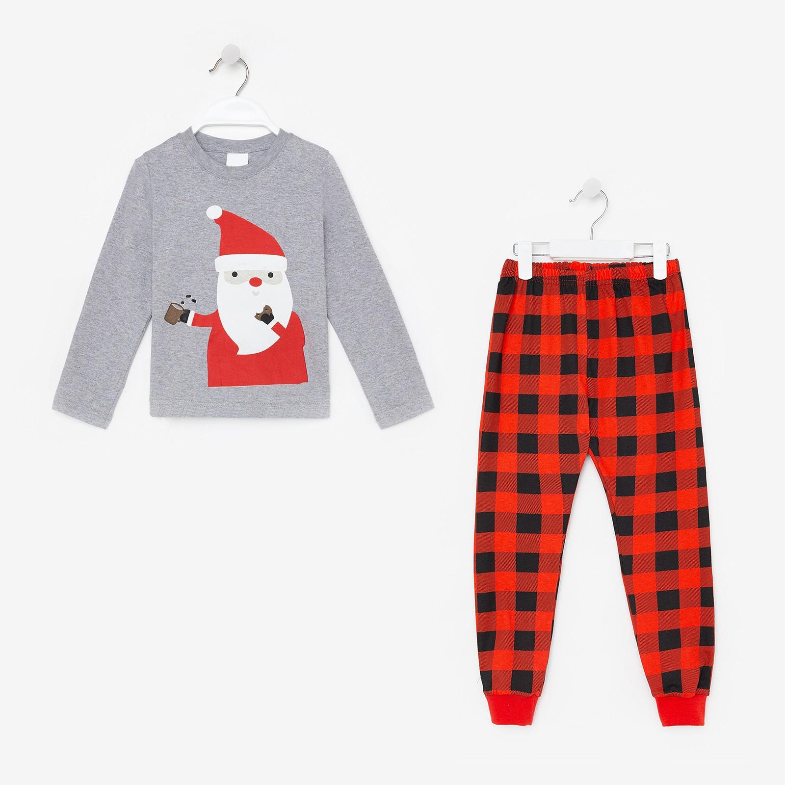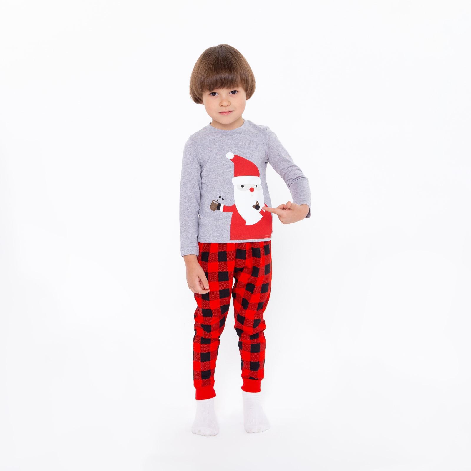 Пижама детская Дед Мороз, цвет серый/красный, рост 122-128 см