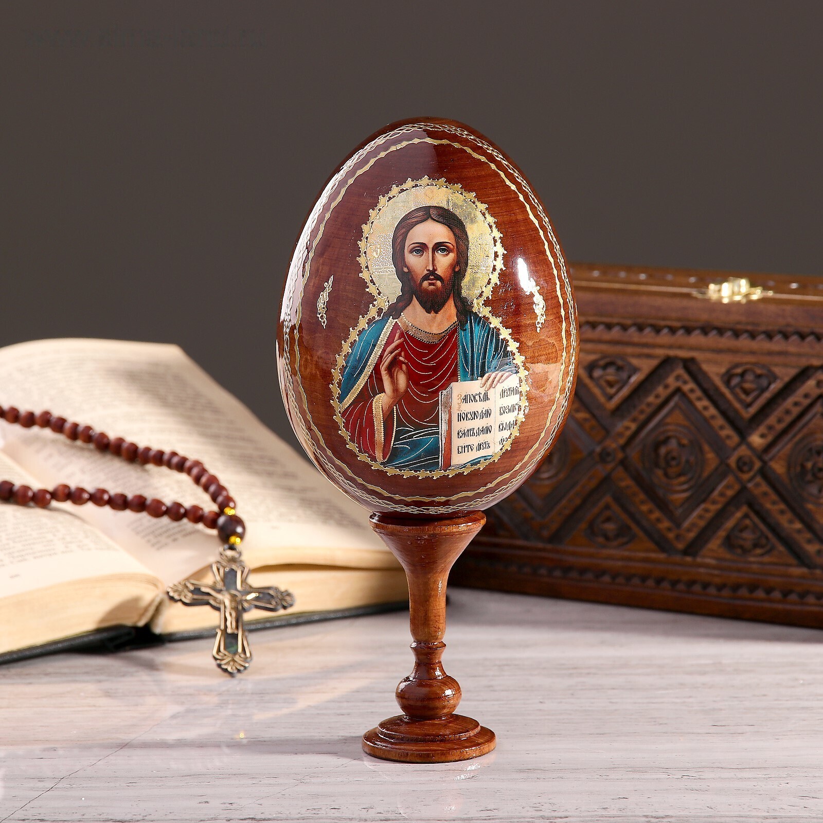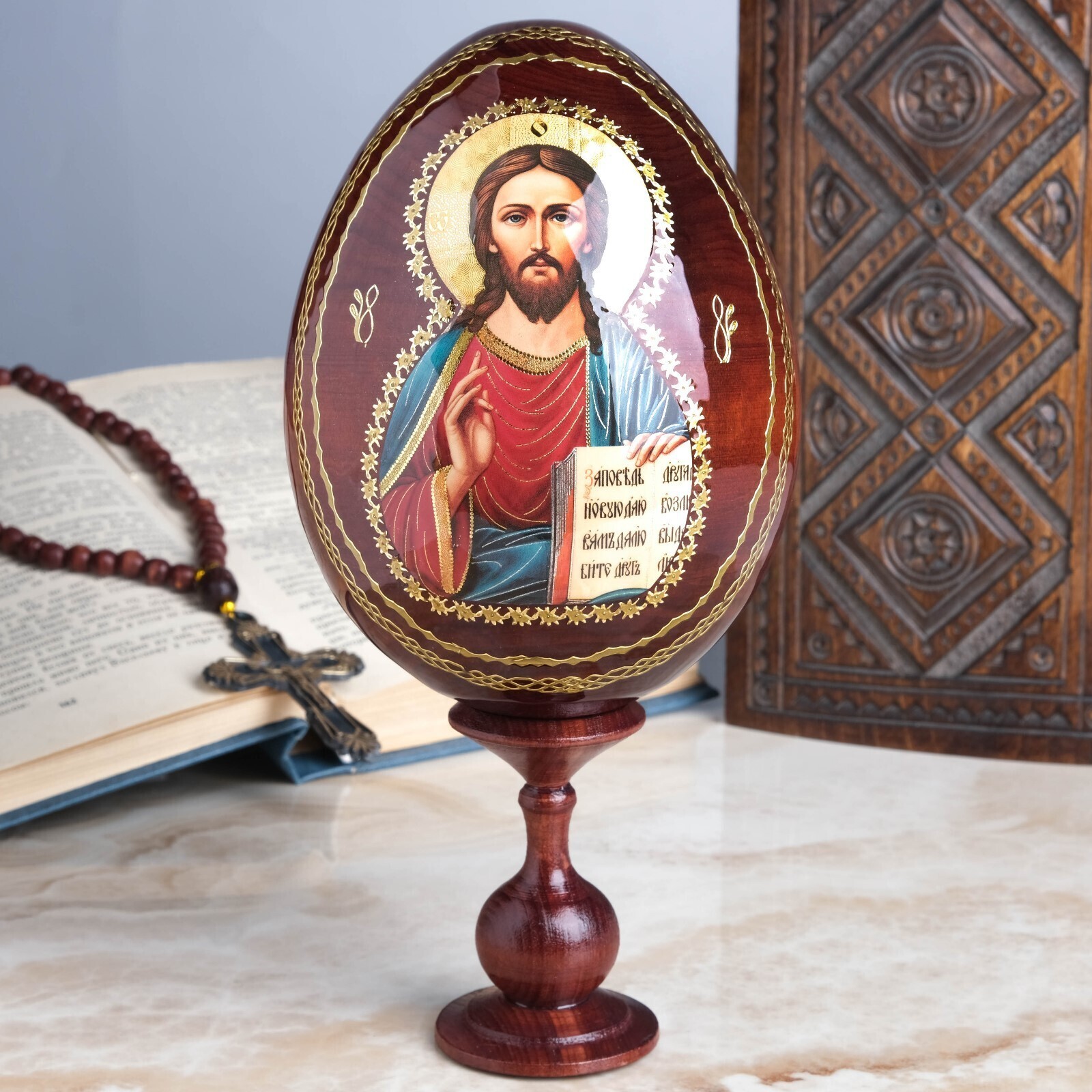 Сувенир Яйцо на подставке икона "Господь Вседержитель"