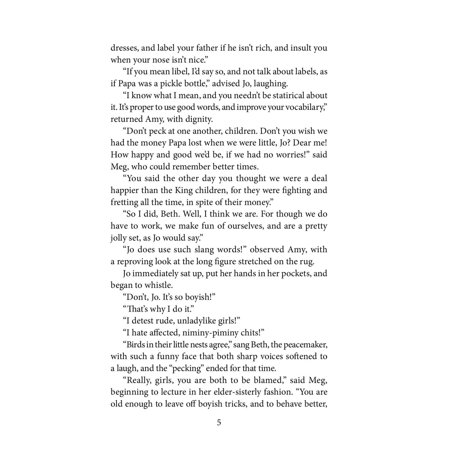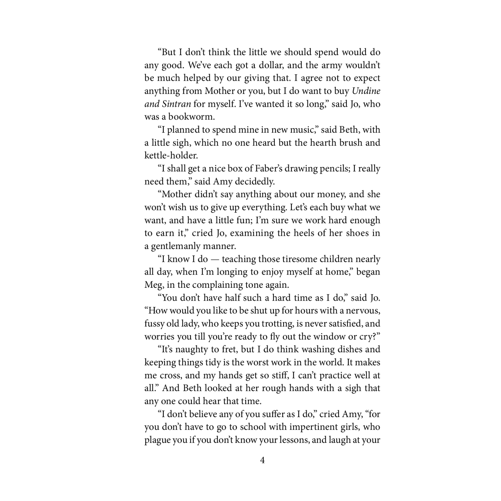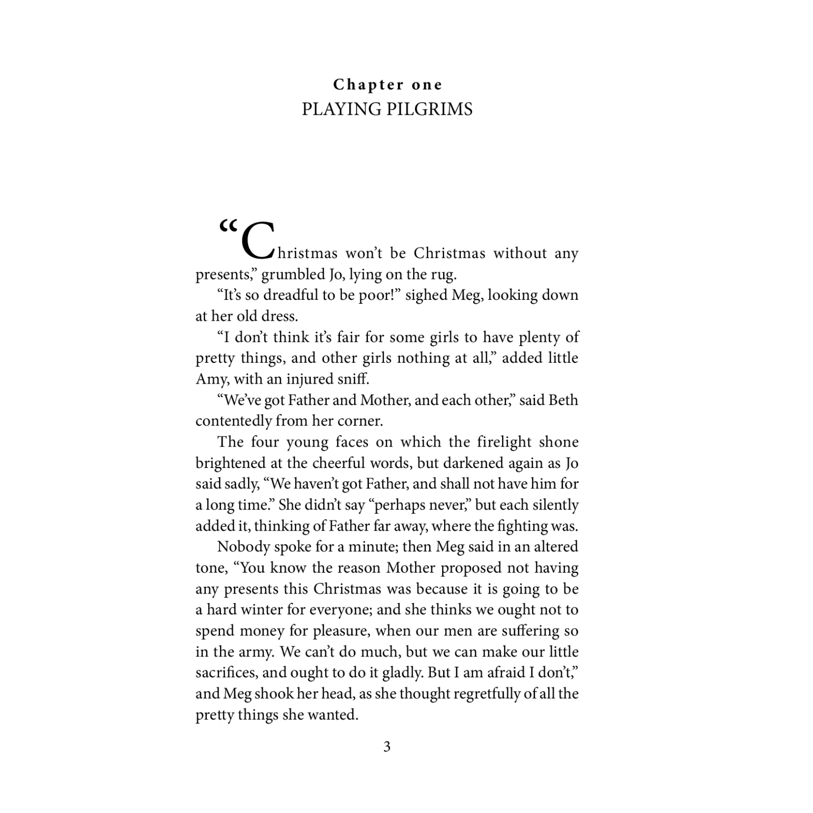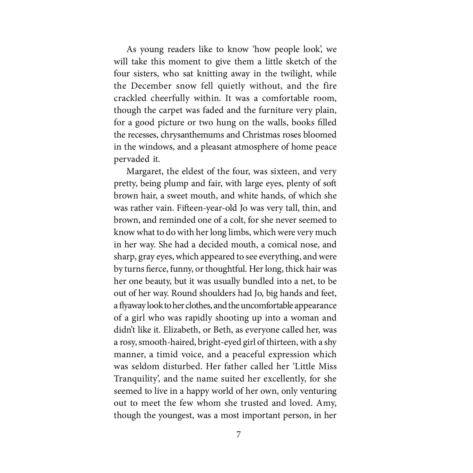 «Little Women» is a novel by American author Louisa May Alcott (1832–1888). First part of the story follows the lives of the four March sisters — Margaret, Jo, Beth, and Amy — who were born in a not so rich family. The girls had to teach themselves to fight their own battles while waiting for their father from the war.