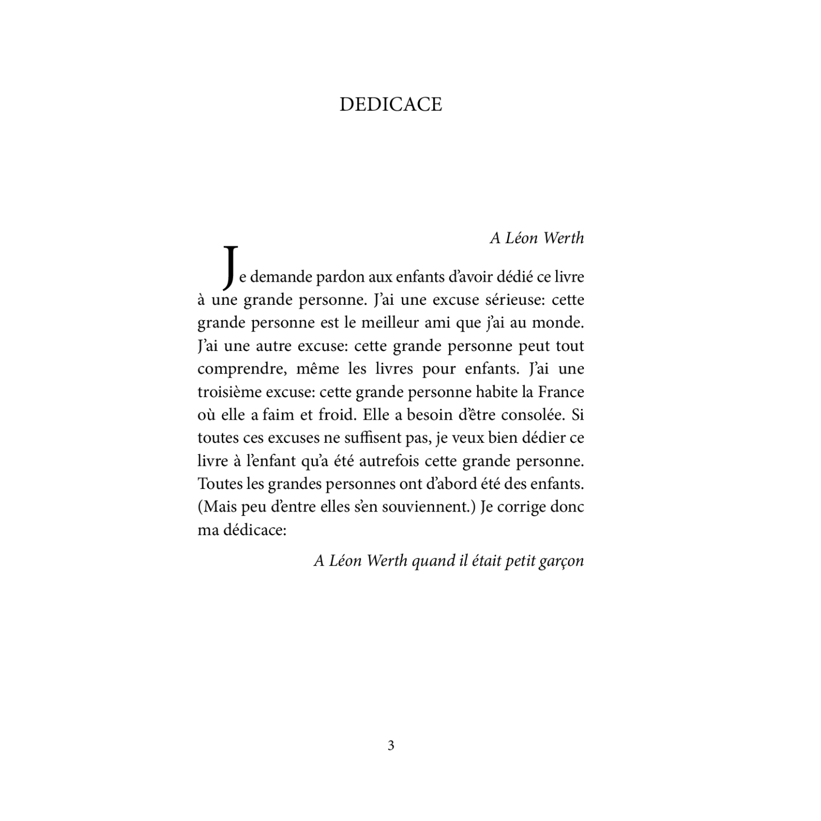 Les œuvres de l’écrivain français Antoine de Saint-Exupéry (1900—1944) font écho presque mystique au présent. L’auteur pose la question du progrès et de ses conséquences, du risque et de la responsabilité, du sens de la vie humaine... Le conte philosophique «Le Petit Prince» est le résultat de l’expérience de vie de l’écrivain. Твори французького письменника Антуана де Сент-Екзюпері (1900—1944) сповнені майже містичного перегуку із сьогоденням. Автор порушує питання прогресу і його наслідків, ризику та відповідальності, сенсу людського життя... Філософська казка «Маленький принц» стала підсумком життєвого досвіду митця.