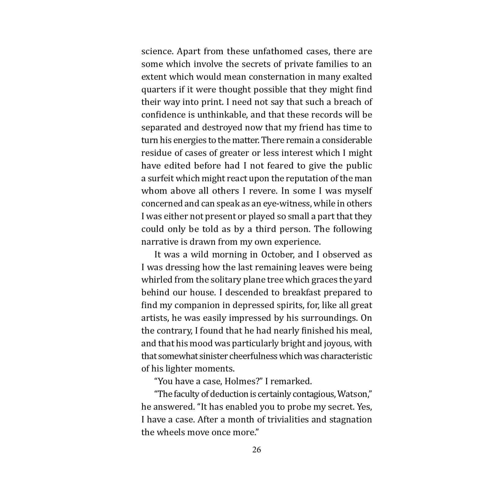 «The Case-Book of Sherlock Holmes» is the latest collection of Scottish writer Arthur Conan Doyle’s detective stories (1859–1930) about Sherlock Holmes. The characters of these works are thieving and unusual, and the gloomy mood of the stories refers to the horrors of the First World War.