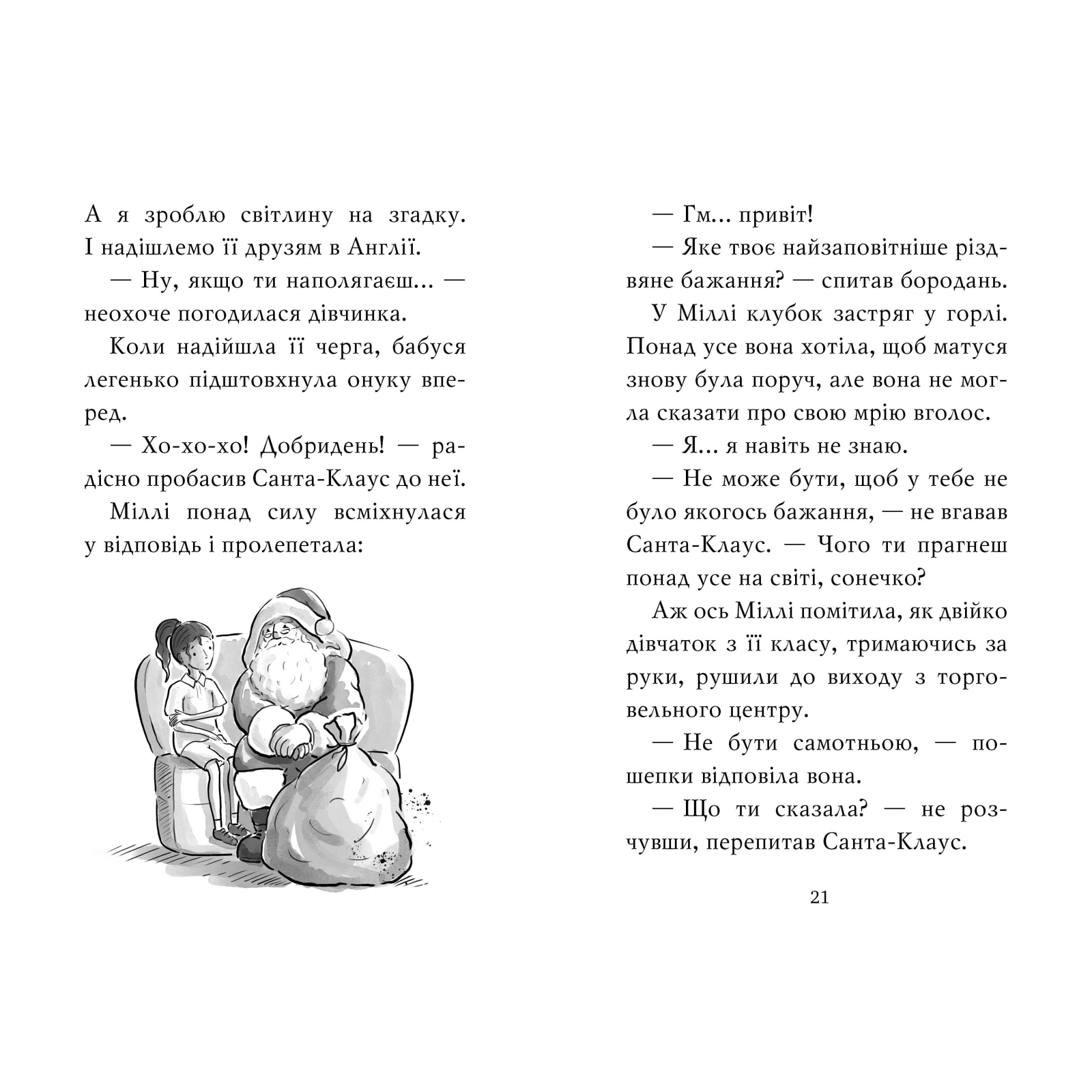 Найзаповітніше різдвяне бажання Міллі — знову обійняти матусю… Довгі літні канікули в Австралії зовсім не тішать дівчинку… Утім, коли вона знаходить на березі вимазане мазутом пінгвіненя, в неї раптом виникає ще одне бажання — врятувати його! Міллі дуже полюбила Зіроньку, як вона назвала пташеня, адже сумує за матусею, а також за друзями, які залишилися в Англії.