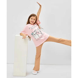 Костюм для девочки нарядный с легинсами клёш из высококачественного хлопка. Нежный и красивый комплект для романтичных натур. Материал комплекта мягкий и приятный к телу. Такой комплект отлично подойдет в детский сад, школу, на прогулку. Легинсы с разрезами по низу, не сковывают движения, комфортные в носке, не сползают за счет удобной резинки. Футболка прямая, со спущенными проймами. Отличный вариант на каждый день!