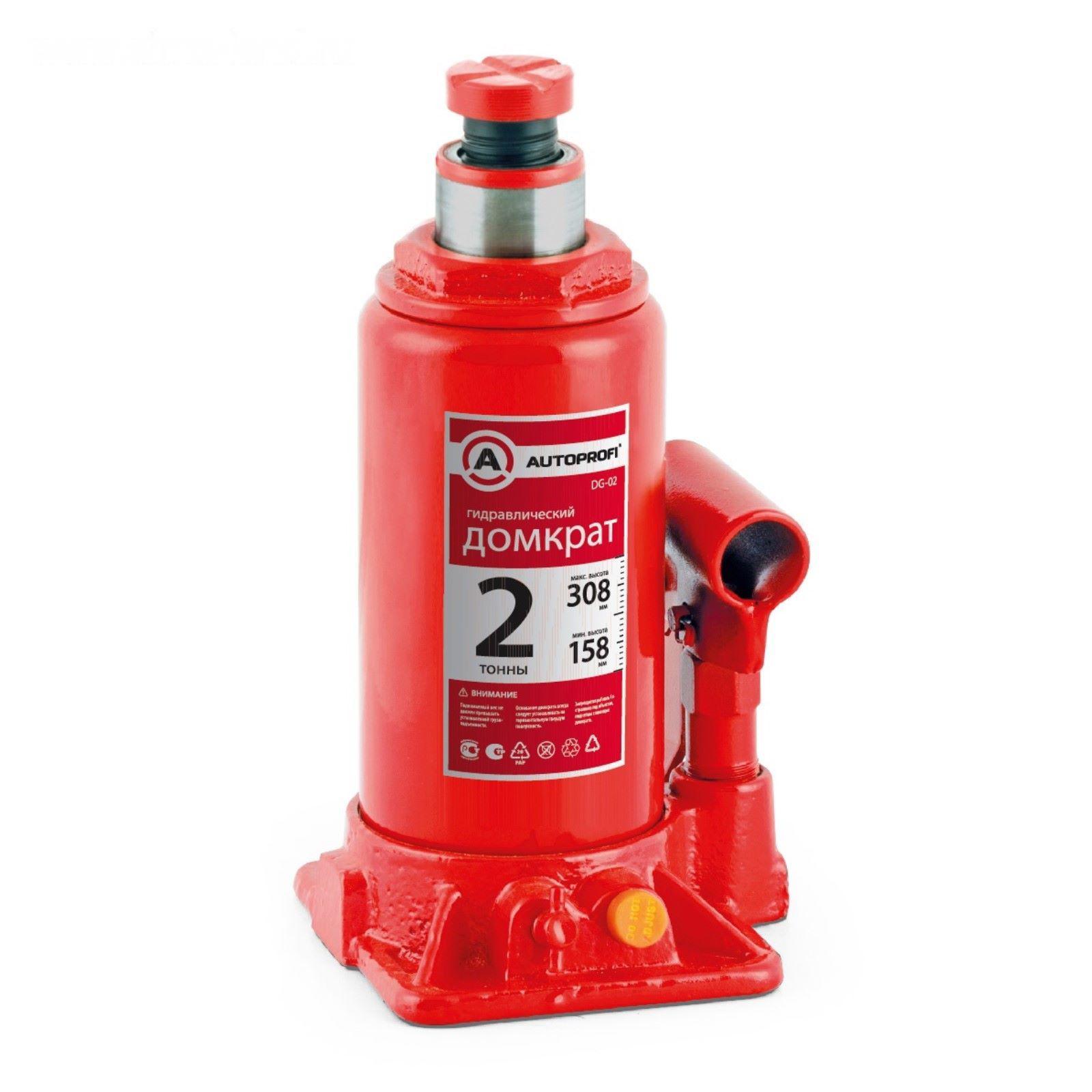 Домкрат гидравлический AUTOPROFI DG-02, бутылочный, 2 тонны, высота подъёма 308 мм
