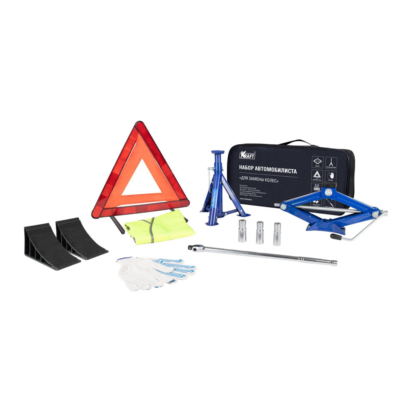 Набор для замены колеса с домкратом KRAFT KT703040, 1.5 т, кейс 105-390 мм, 1/2", упоры