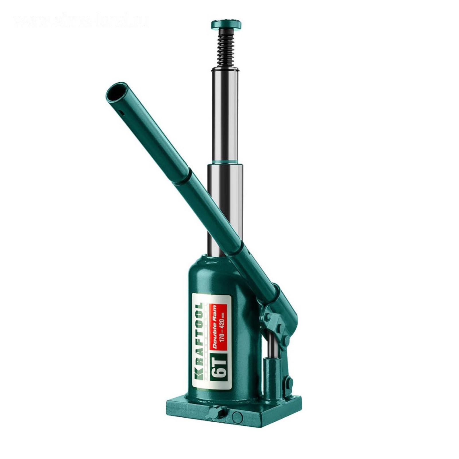 Домкрат бутылочный Kraftool DOUBLE RAM 43463-6, двухштоковый, подъем 170-420 мм, 6 т