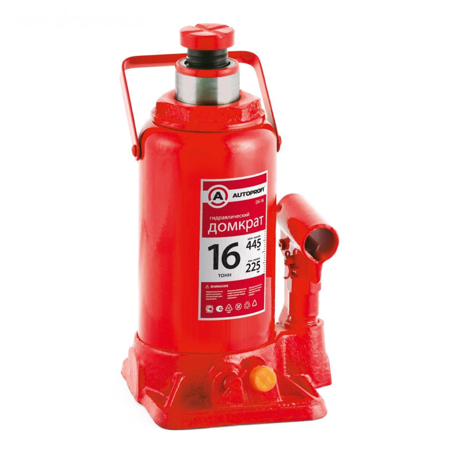 Домкрат гидравлический AUTOPROFI DG-16, бутылочный, 16 тонны, высота подъёма 445 мм
