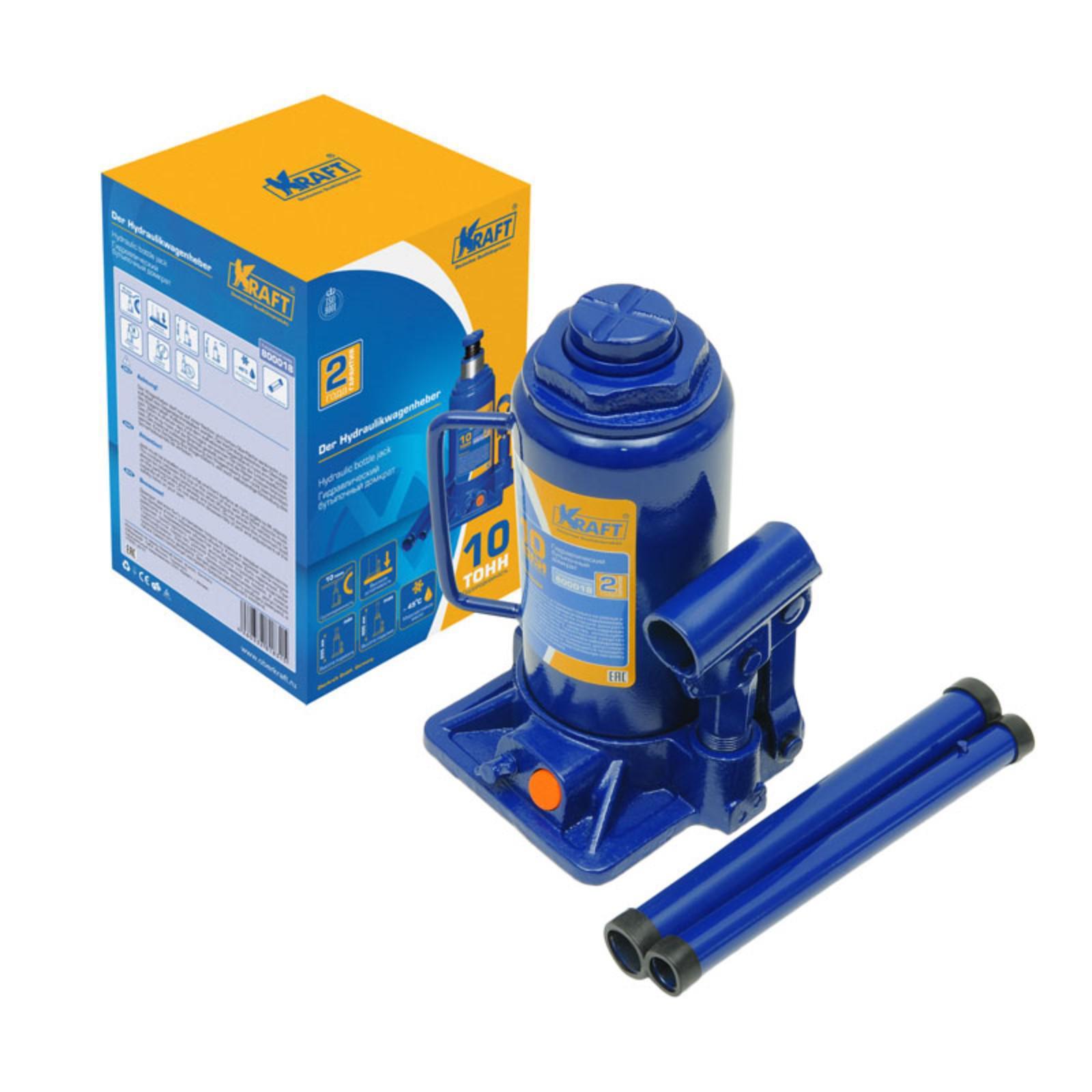 Домкрат бутылочный KRAFT KT 800018, высота подъема 205-400 мм, 10 т