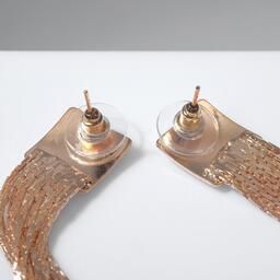 Серьги висячие "Голливуд" квадрат с нитями, цвет розовое золото
