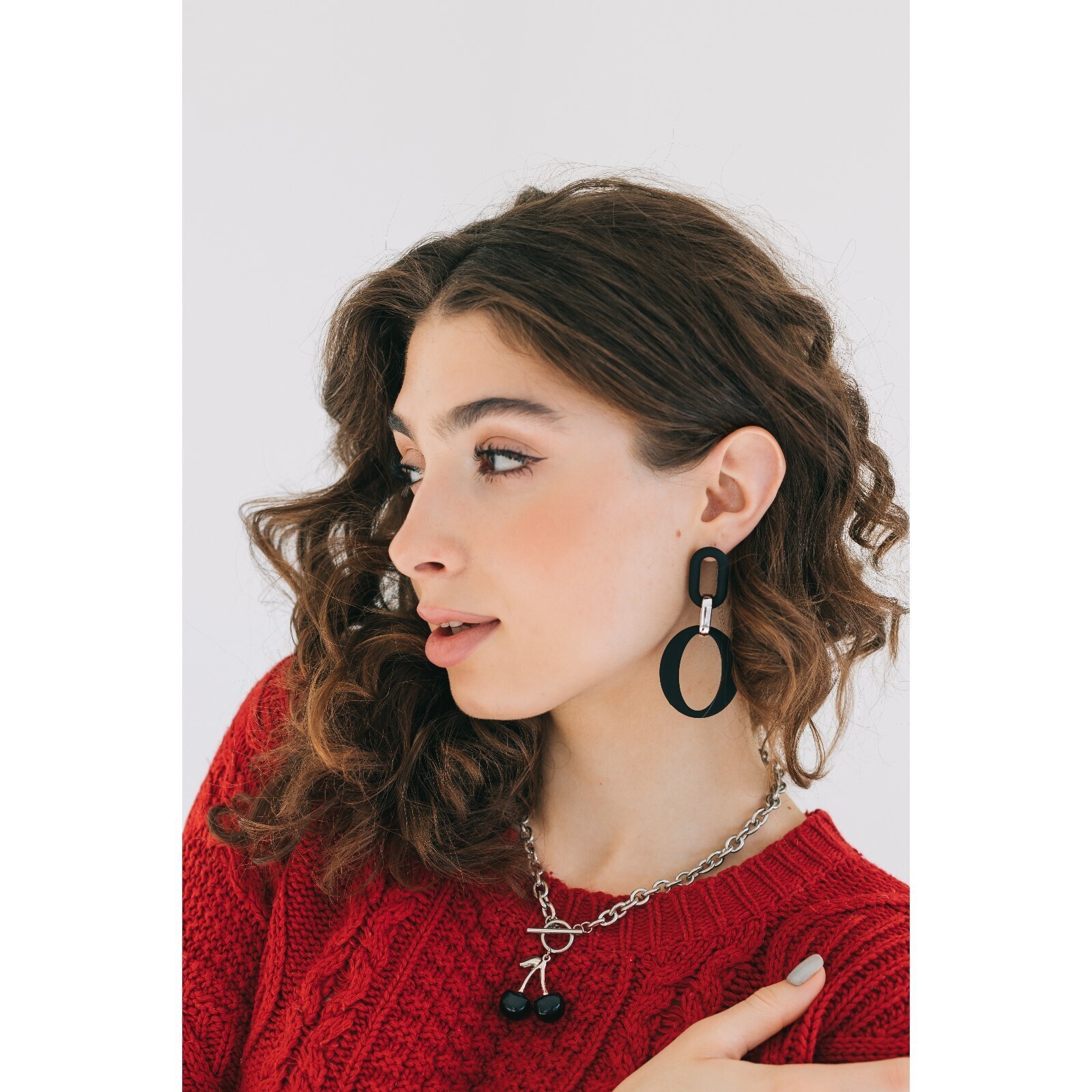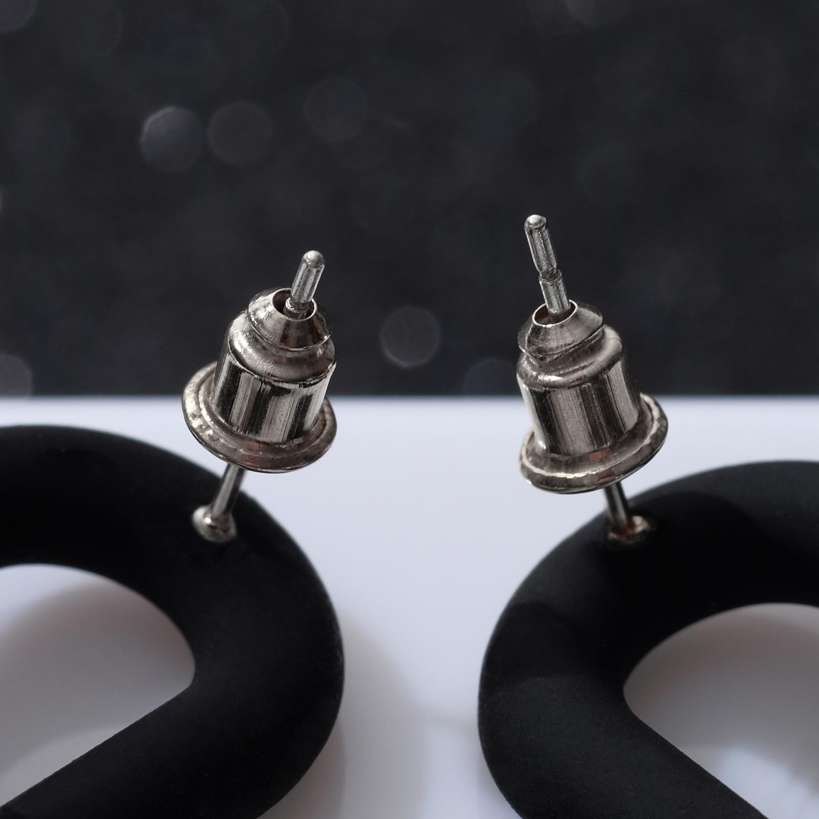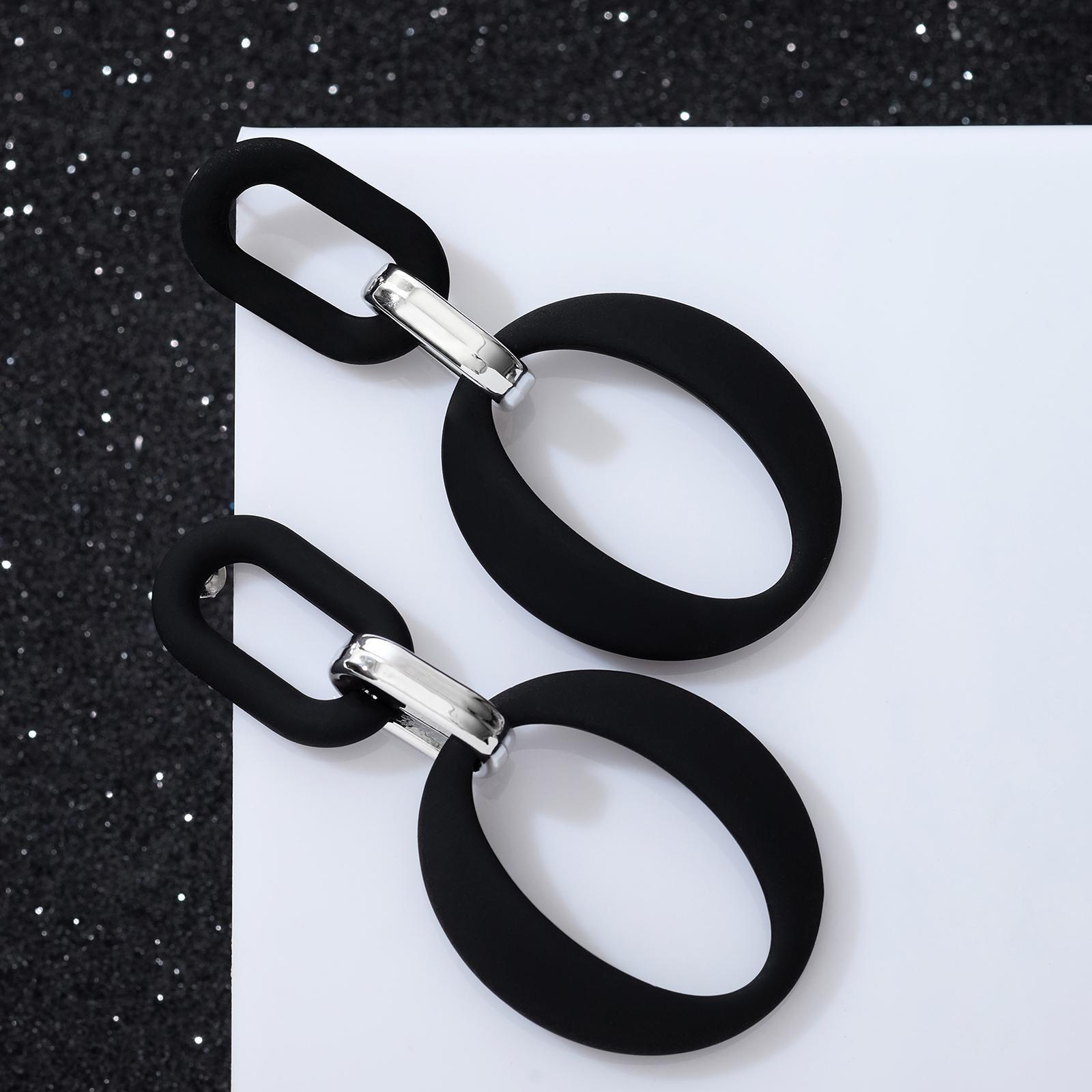 Серьги металл "Цепь" кольцо и овал, 3 звена, цвет серебристо-чёрный