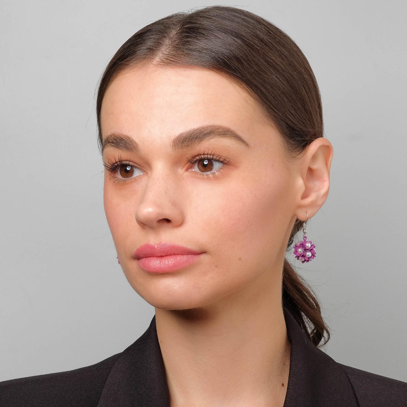 Серьги металл "Яркость" букет цветов, цвет бело-фиолетовый в серебре