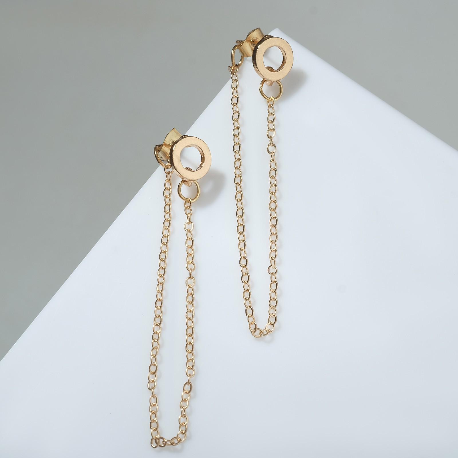 Серьги металл "Цепочки" круг, цвет золото