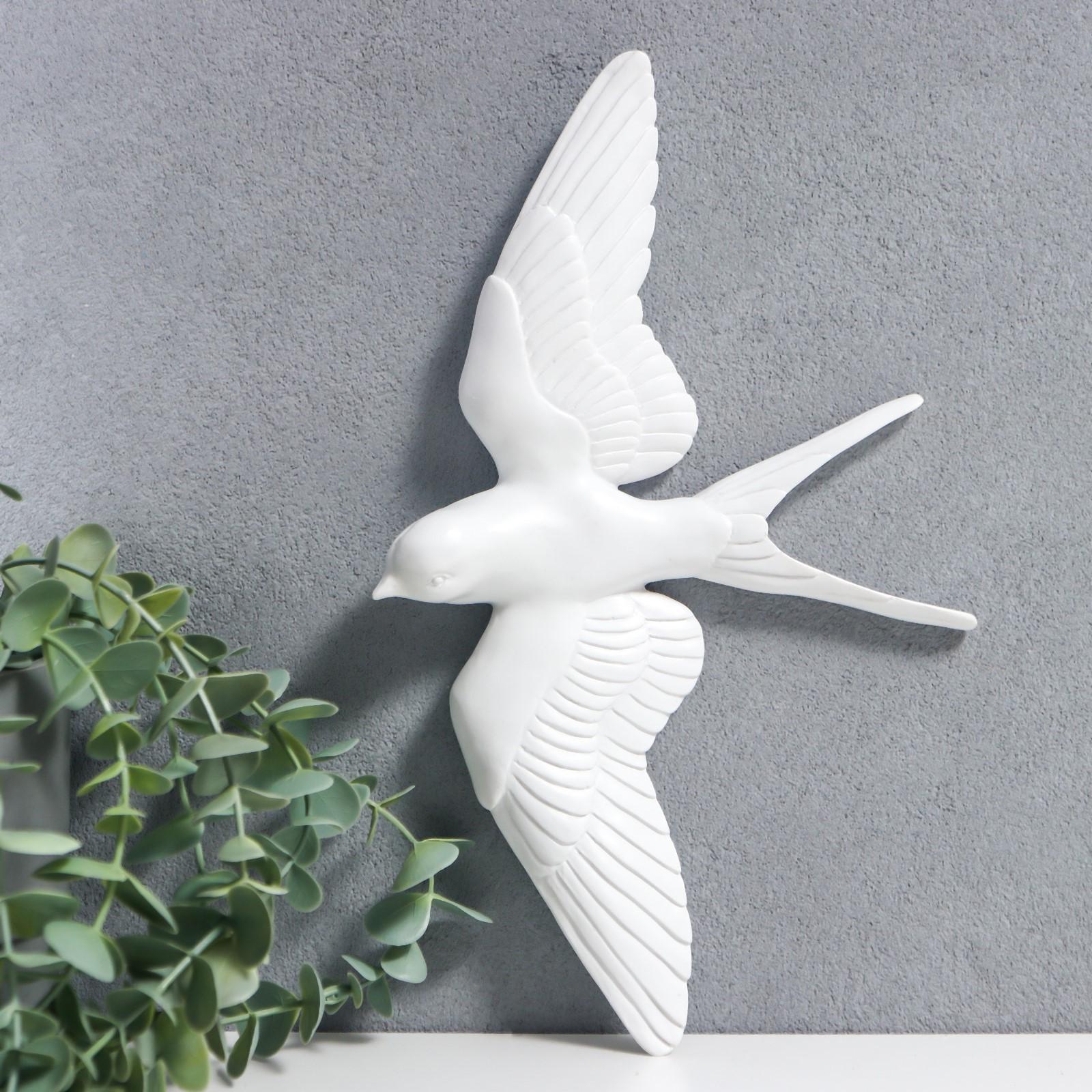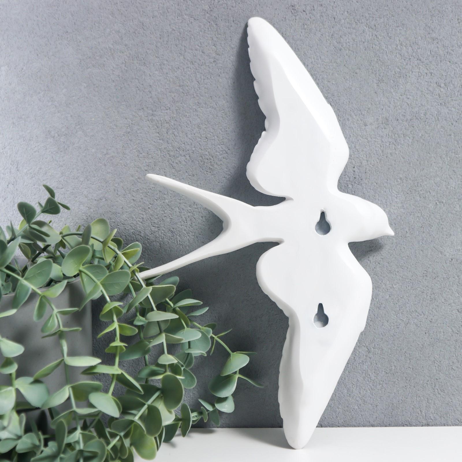 Сувенир полистоун настенный декор "Птица парит" белый 18х30 см