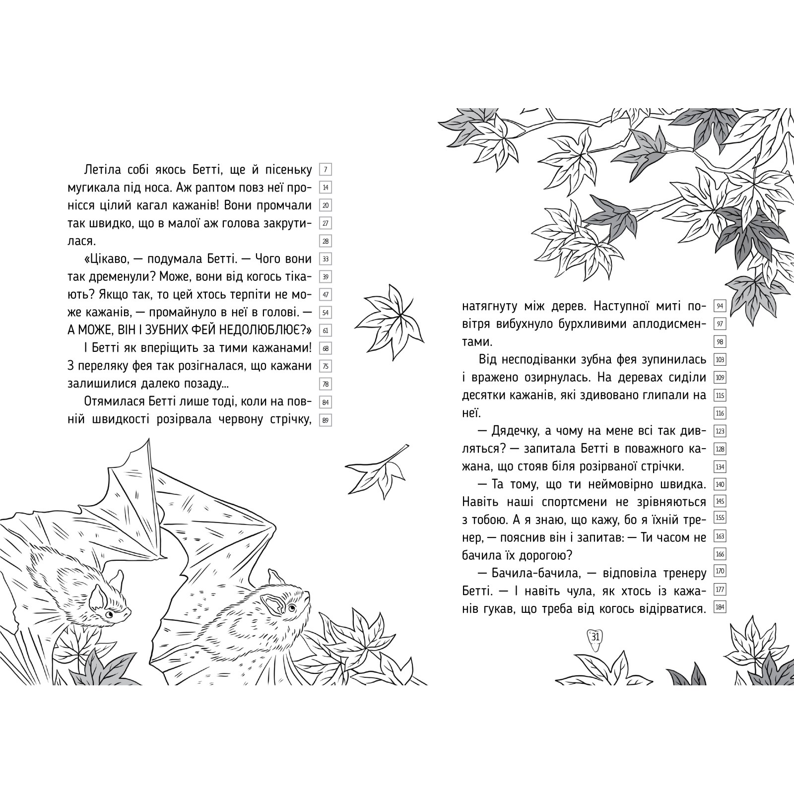 А ти знаєш Бетті — маленьку зубну фею? О, вона справжня чарівниця і велика вигадниця… І з нею ніколи не буває нудно! Хочеш дізнатися, як фея стала детективом? А подружитися з балакучим каменем? А може, візьмеш участь у кажанячих перегонах? Мерщій розгортай цю книжку — чарівні пригоди вже чекають на тебе!