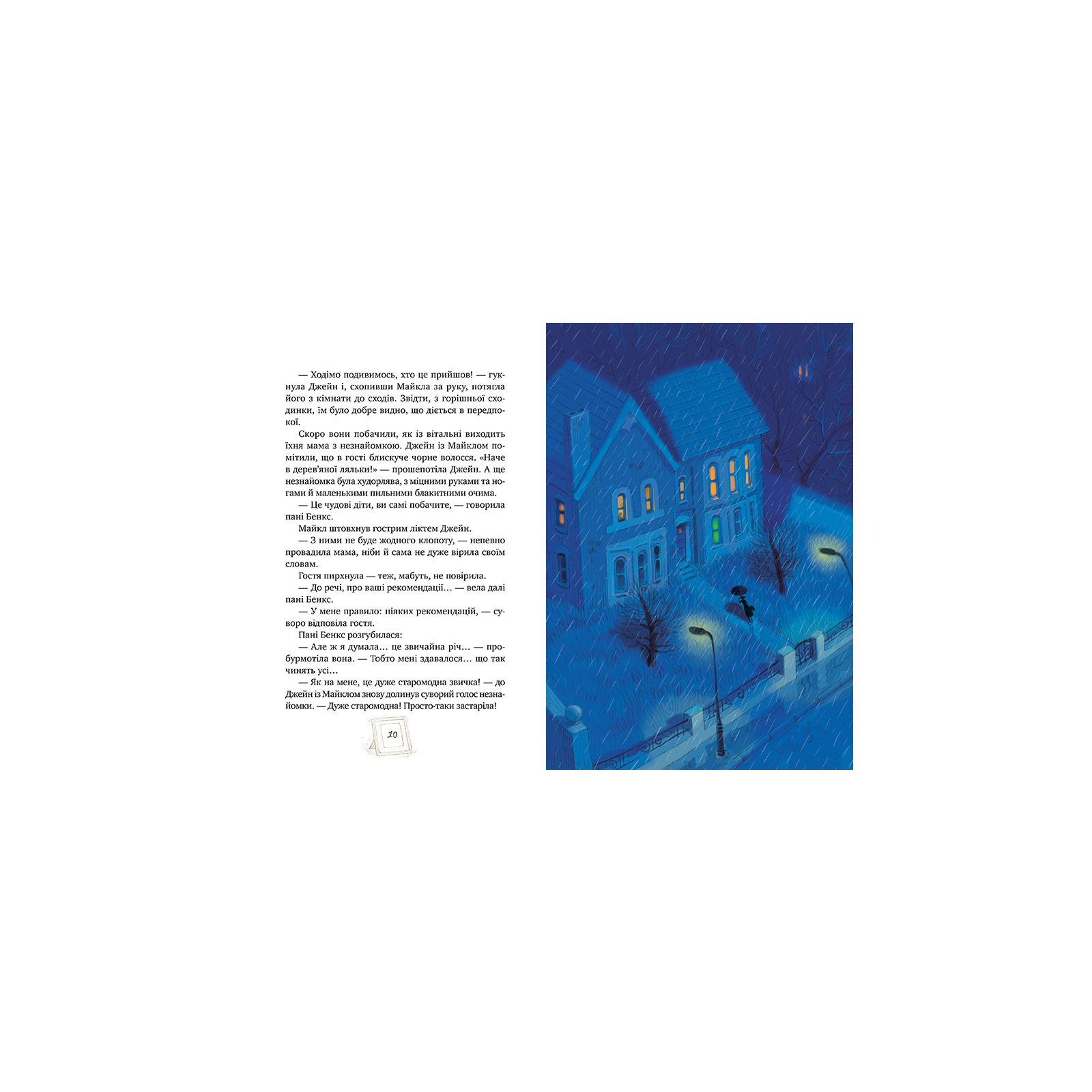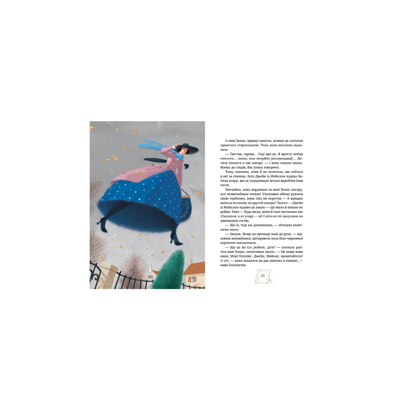 Якось, коли повіяв східний вітер, на порозі будинку Бенксів з’явилася нова няня. Це була неперевершена Мері Поппінс. Вона вміла їздити вгору поруччям сходів, у її килимовій торбинці ховалося все, що завгодно, навіть розкладне ліжко. А головне, вона відкрила своїм вихованцям Джейн і Майклові світ чудес, де картини вуличного художника оживають, корова танцює та розмовляє з королем, а на Різдво можна зустріти в крамниці зоряну дівчинку…