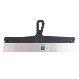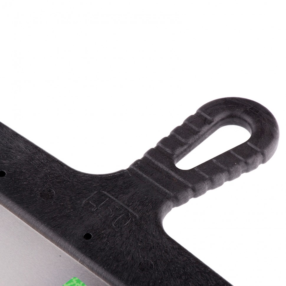 Полотно шпателя изготовлено из нержавеющей стали. Облегченная ручка из ударопрочной пластмассы.Ручка шпателя имеет специальную изогнутую форму, что обеспечивает максимально удобную работу.Шпатель предназначен для нанесения, выравнивания и сглаживания шпаклевочного слоя на больших и малых поверхностях.