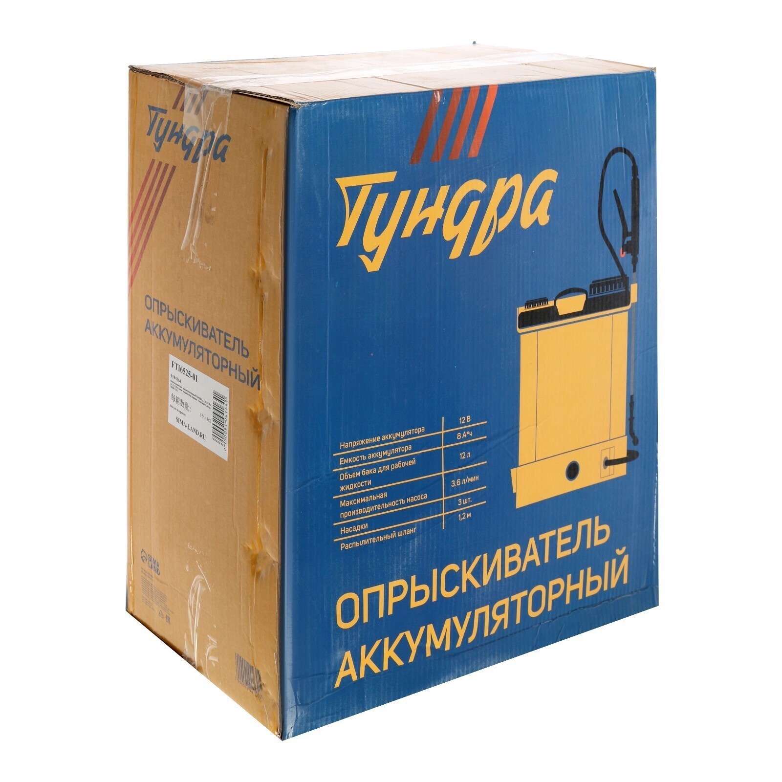 Опрыскиватель аккумуляторный ТУНДРА, 12В, 8 Ач, 12 л, индикатор заряда, 3 насадки