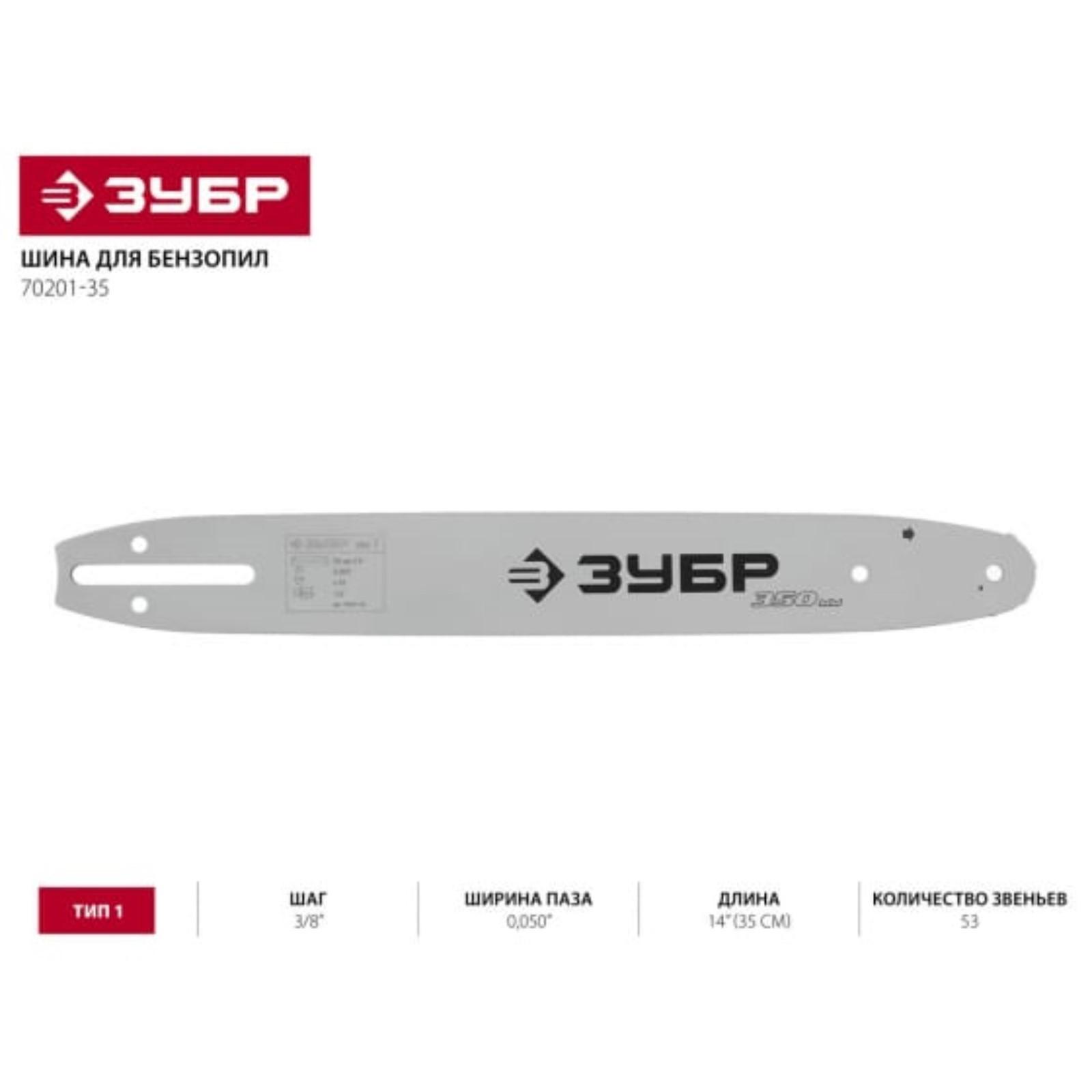 Шина для бензопил ЗУБР, тип 1, шаг 0.325", паз 1.3 мм, длина 14", 53 звена