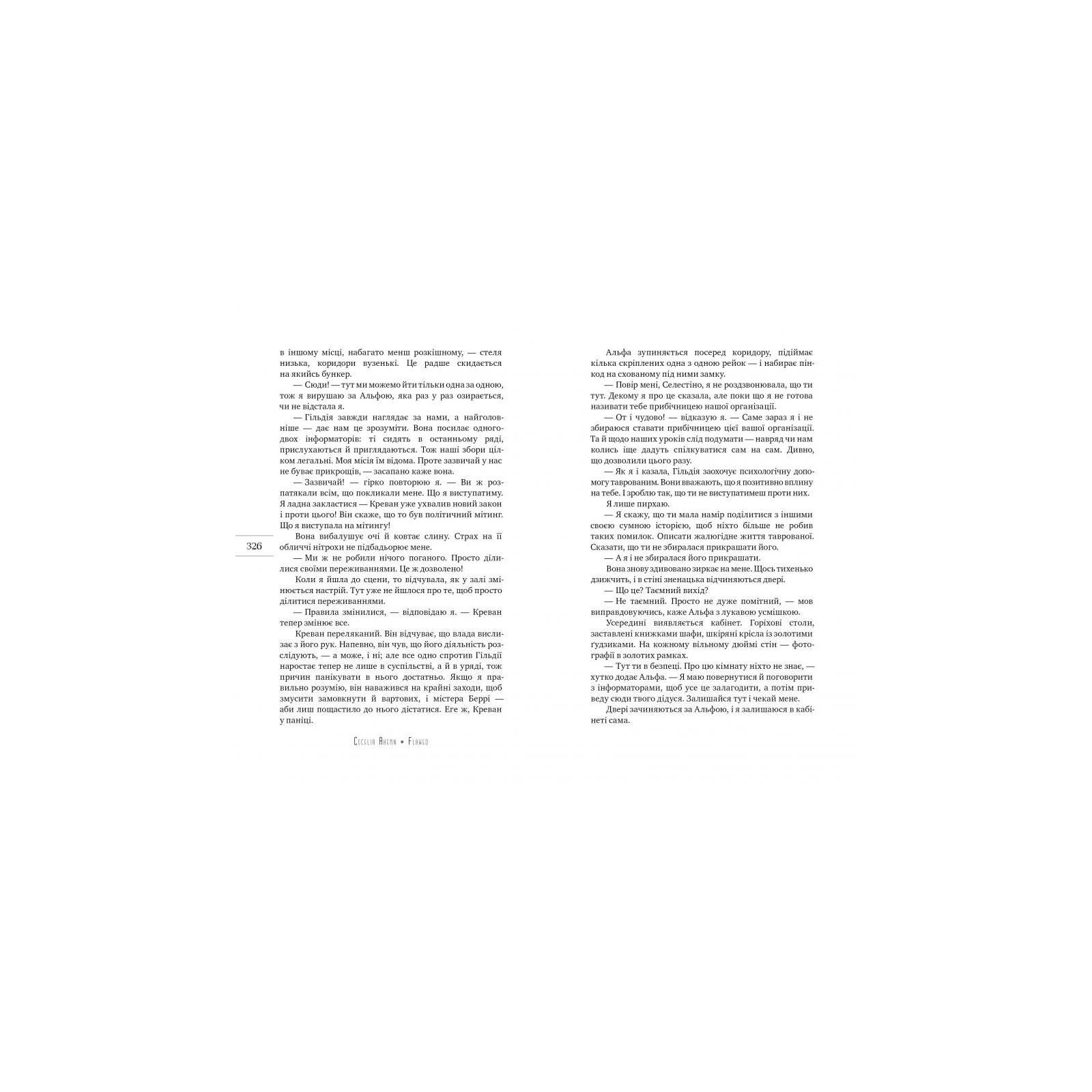 Це світ, де ідеал цінують понад усе, а за проступки — таврують. Для таврованих закриті всі двері, вони — ізгої, їхнє життя — справжня каторга. Таврованим не співчувають, а допомогу їм вважають злочином. Однак усе змінюється, коли тавро отримує досі ідеальна дівчина — отримує за те, що допомогла таврованому. Чи витримає Селестіна тиск системи? Хто відречеться від неї, а хто залишиться поруч? Роман-антиутопія Сесілії Ахерн розкриває нові грані таланту письменниці. Звертаючись до гострих тем суспільства та особистості, авторка майстерно показує силу духу справжньої Людини.