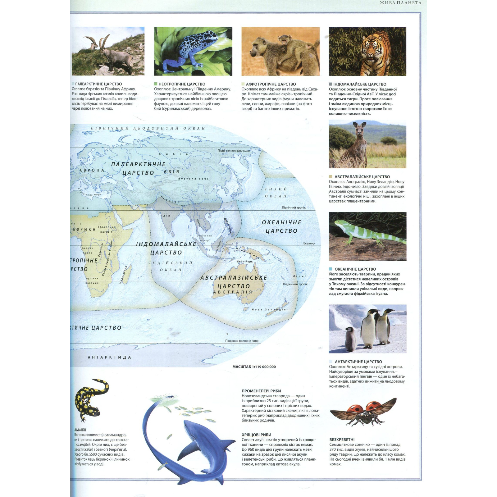 Світ тварин унікальний і розмаїтий. І цей ілюстрований атлас розкриє тобі чимало таємниць дикої природи. Ти відвідаєш усі континенти і природні зони, зазирнеш у найпотаємніші куточки планети, побуваєш у тропічних лісах, тундрі, високо в горах і на коралових рифах. Завдяки докладним розповідям та яскравим малюнкам і фотографіям ти дізнаєшся про життя, звички, характерні риси й особливості добування корму тварин з усіх куточків нашої планети. Атлас стане твоїм незамінним провідником у світі тварин.