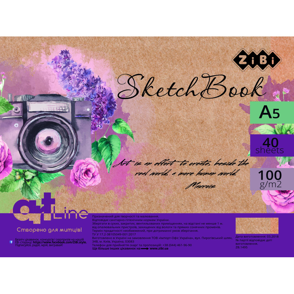 • Модель А5, Скетчбук ART Line 40 аркушів, пружина білий б