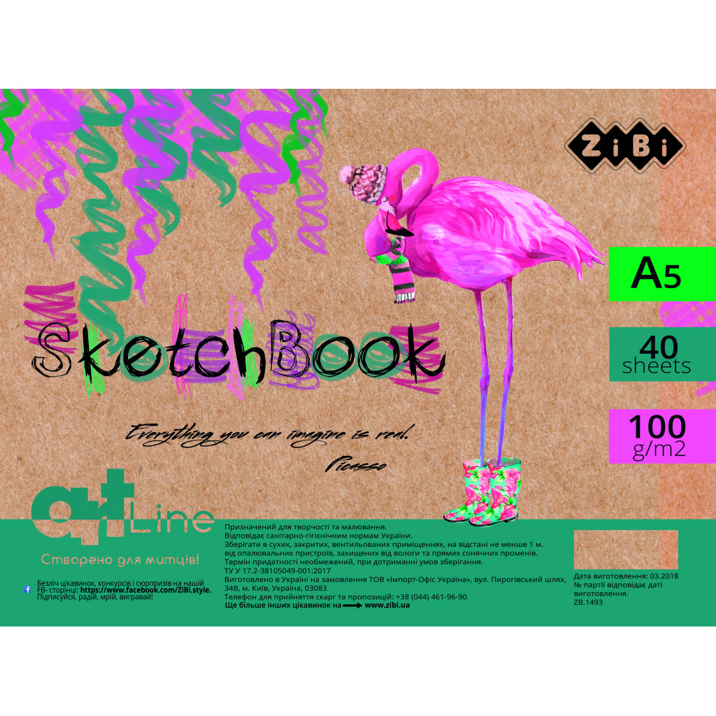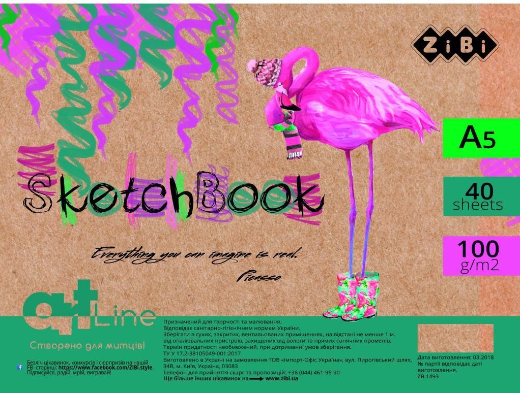 Альбом для малювання ZiBi А5, Скетчбук ART Line 40 аркушів, пружина білий блок (ZB.1493)