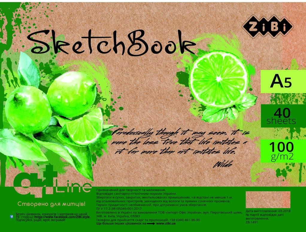 Альбом для малювання ZiBi А5, Скетчбук ART Line 40 аркушів, пружина кремовий блок (ZB.1491)