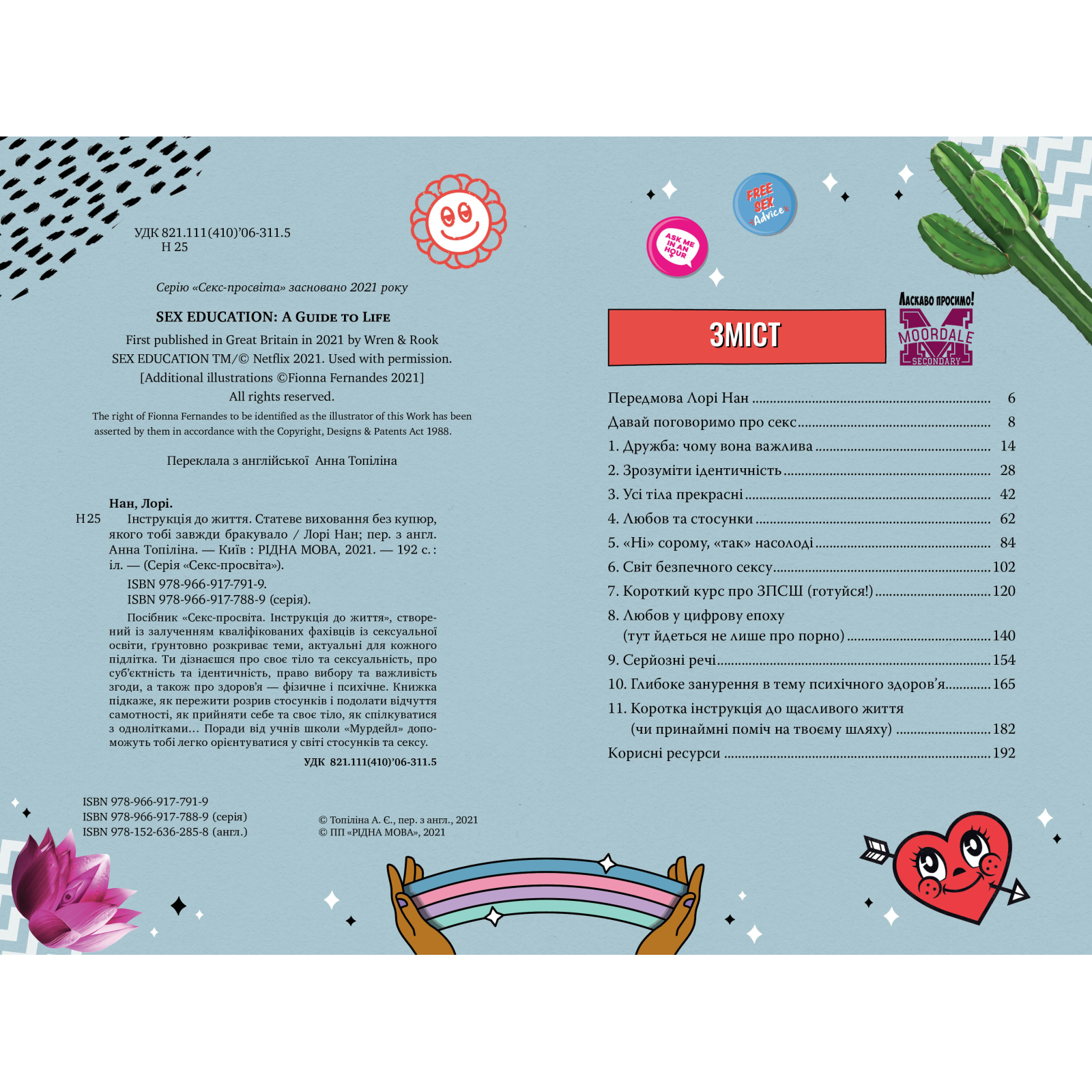 Посібник «Секс-просвіта. Інструкція до життя», створений із залученням кваліфікованих фахівців із сексуальної освіти, ґрунтовно розкриває теми, актуальні для кожного підлітка. Ти дізнаєшся про своє тіло та сексуальність, про суб’єктність та ідентичність, право вибору та важливість згоди, а також про здоров’я — фізичне і психічне. Книжка підкаже, як пережити розрив стосунків і подолати відчуття самотності, як прийняти себе та своє тіло, як спілкуватися з однолітками… Поради від учнів школи «Мурдейл» допоможуть тобі легко орієнтуватися у світі стосунків та сексу.
