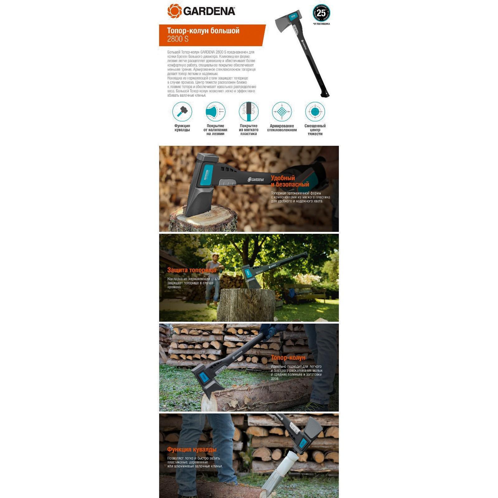 Топор-колун, 72,3 × 22,6 см, в сборе, металлический, GARDENA