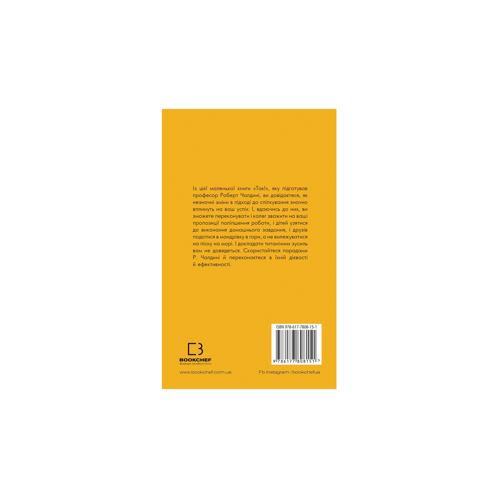 Із цієї маленької книги «Так!», яку підготував професор Роберт Чалдині, ви довідаєтеся, як незначні зміни в підході до спілкування значно вплинуть на ваш успіх. І, вдаючись до цих змін, ви зможете переконувати і колег зважити на ваші пропозиції поліпшення роботи, і дітей узятися до виконання домашнього завдання, і друзів податися в мандрівку в гори, а не вилежуватися на піску на морі. І докладати титанічних зусиль вам не доведеться. Скористайтеся порадами Р. Чалдині й переконаєтеся в їхній дієвості й ефективності.