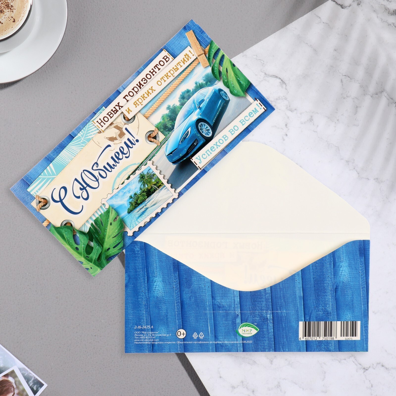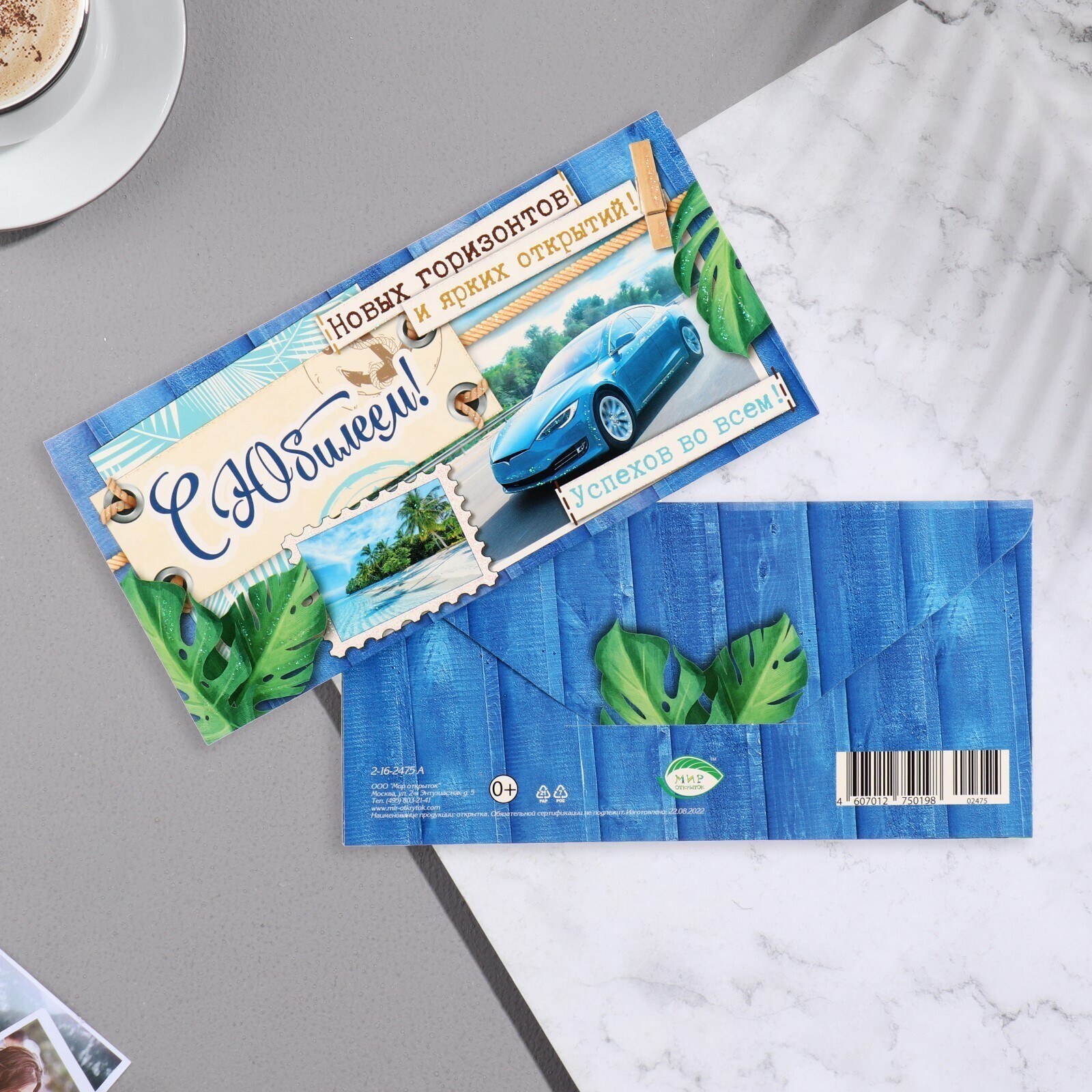 Конверт для денег "С Юбилеем!" конгрев, глиттер, листья, машина, 16,8х8,3 см