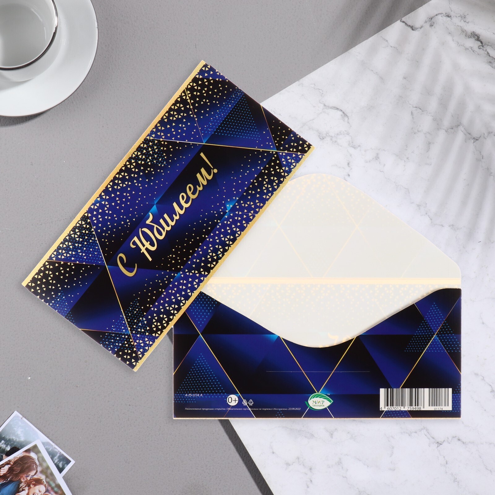 Конвер для денег "С Юбилеем!" синий фон, 16,5х8,5 см