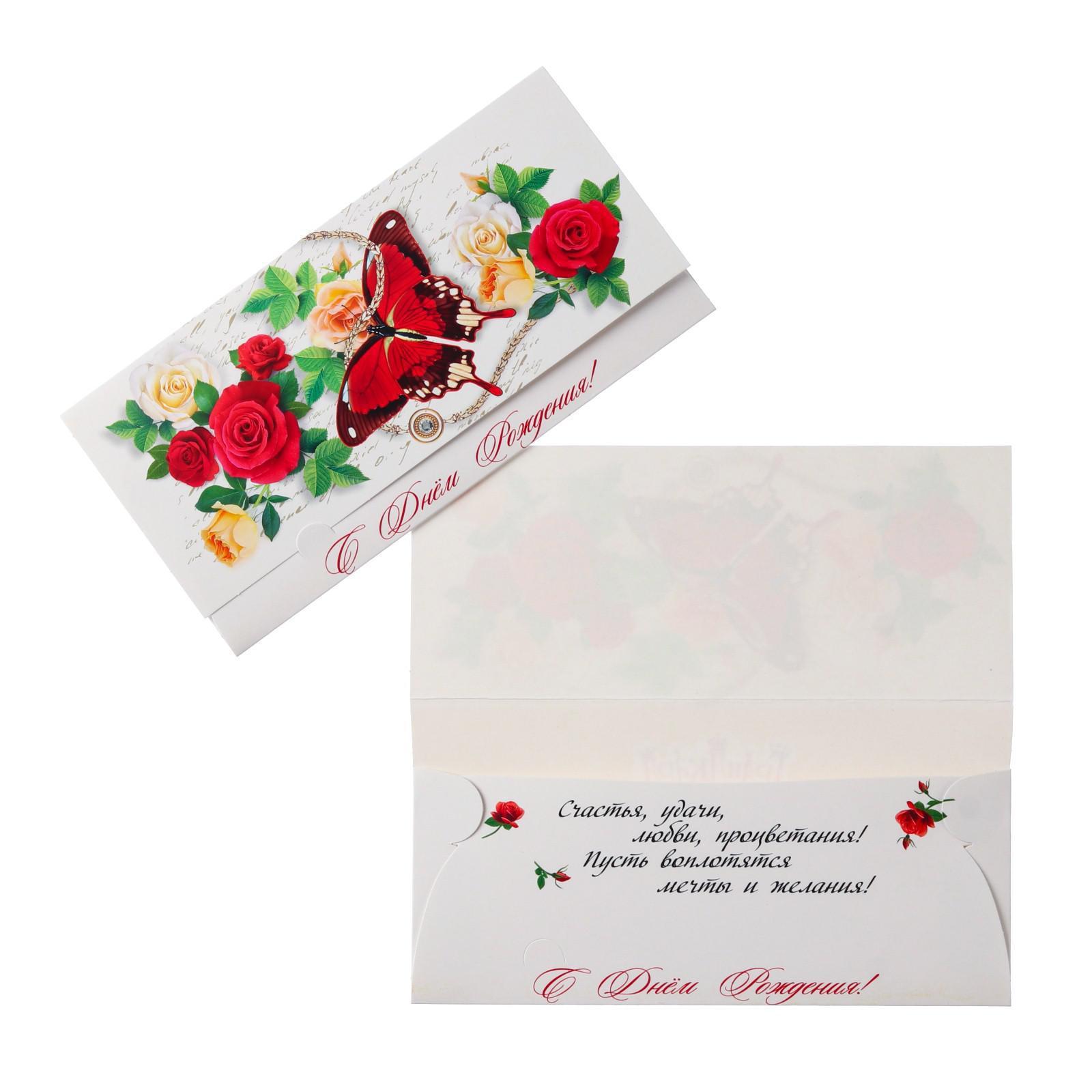 Конверт для денег "С Днём Рождения!" бабочка, розы