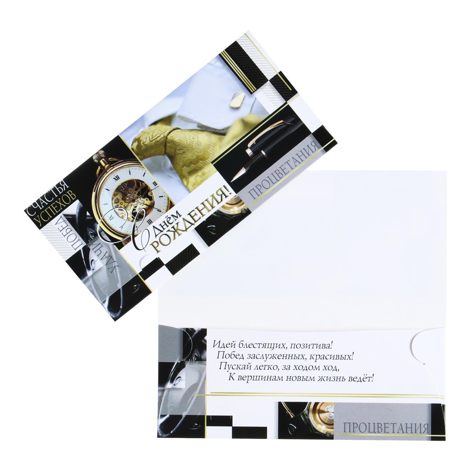 Конверт для денег "С Днём Рождения!" часы, золотой галстук