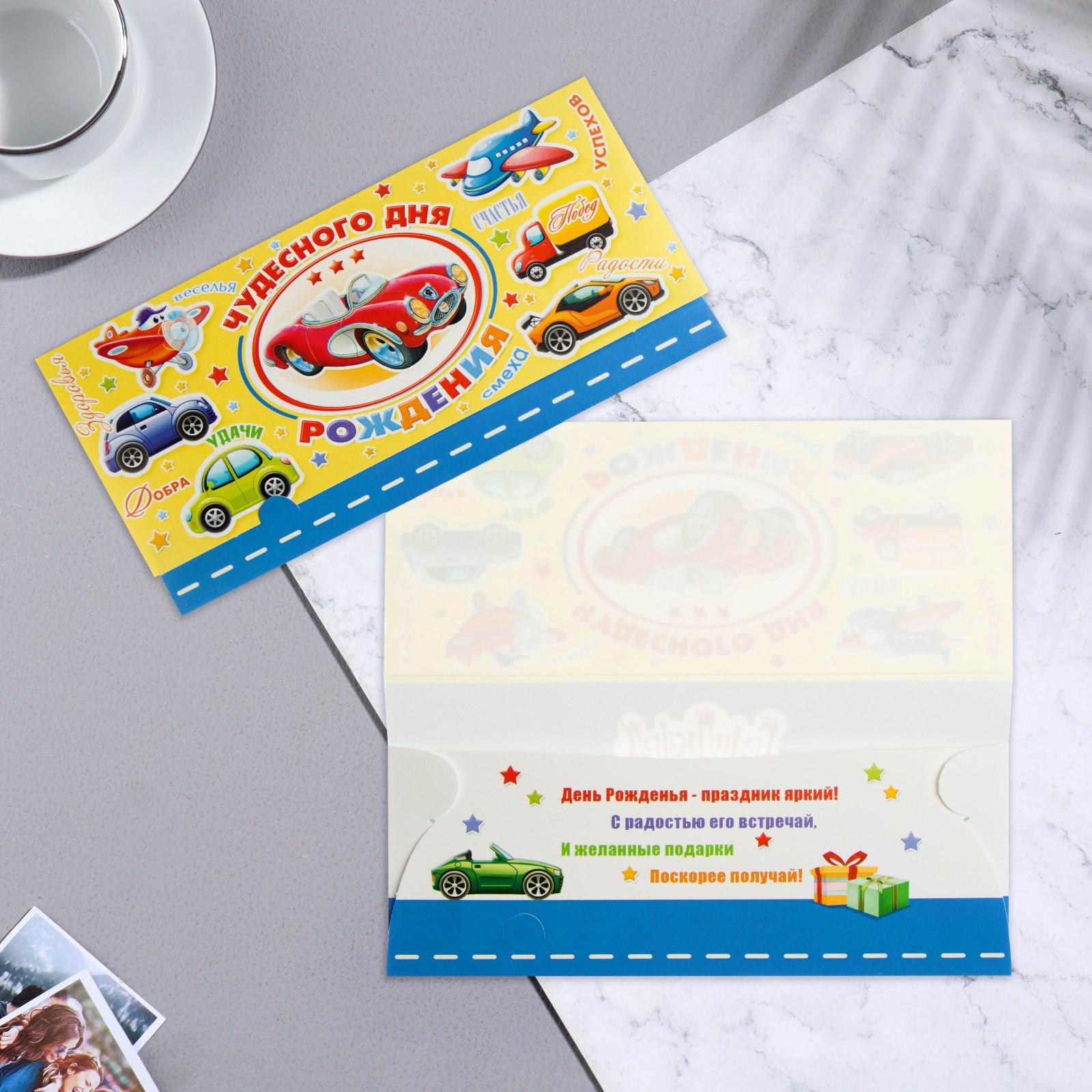 Конверт для денег "Чудесного Дня Рождения!" машинки, глиттер, 16х8см